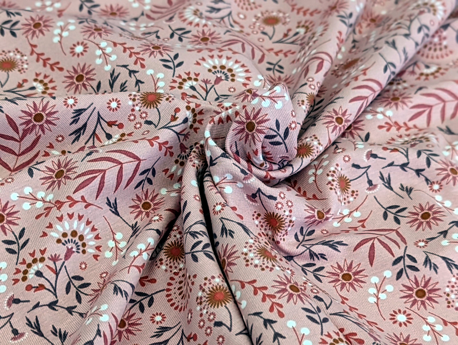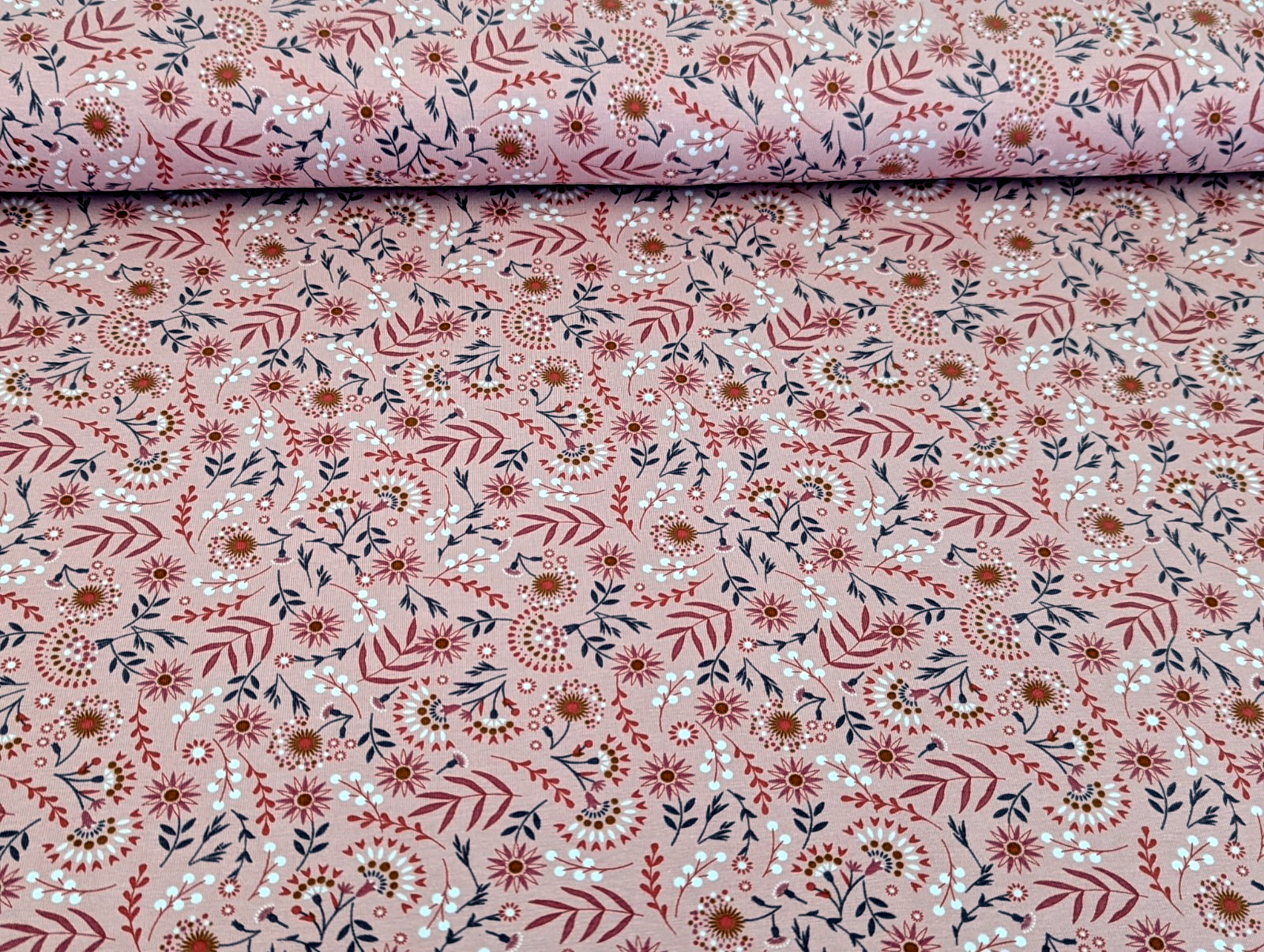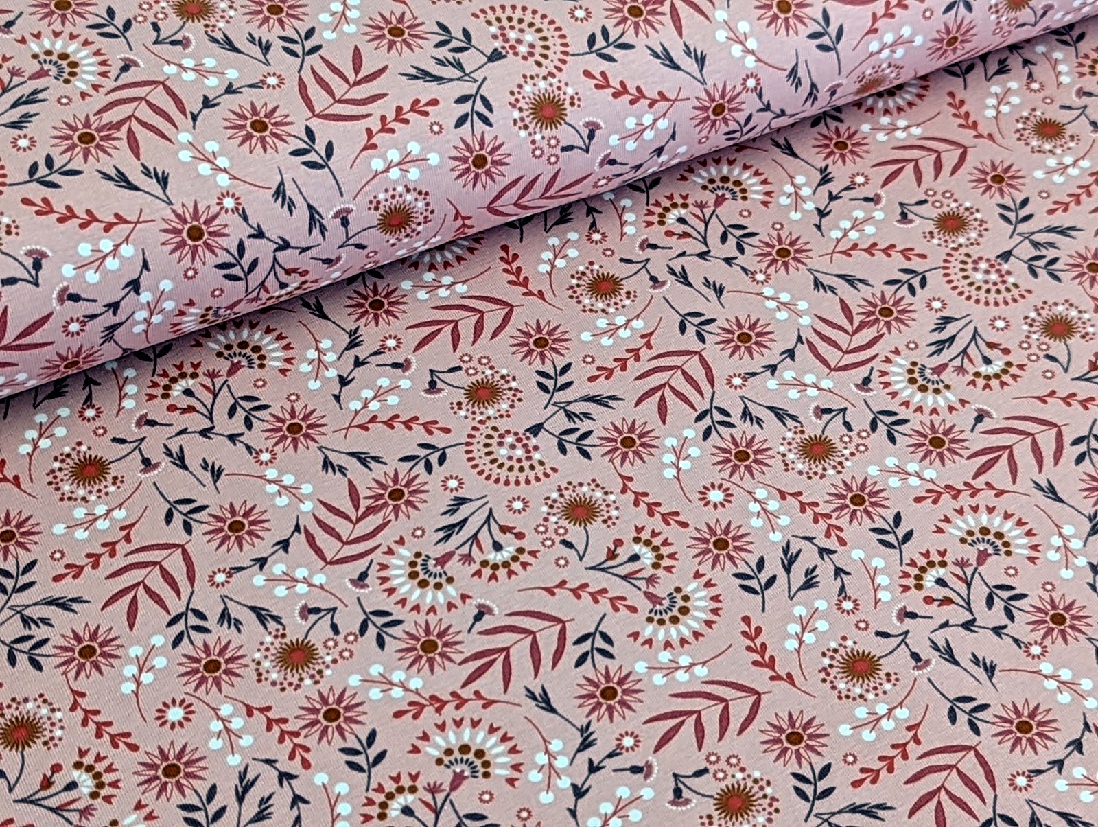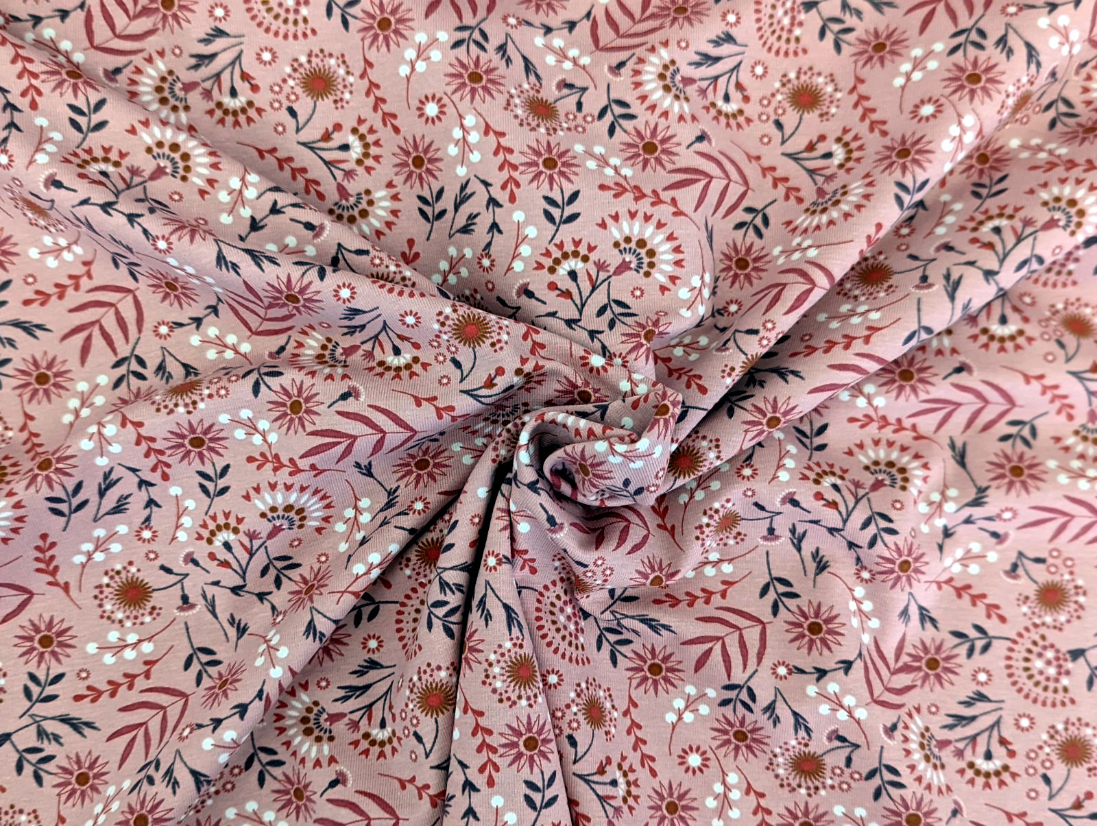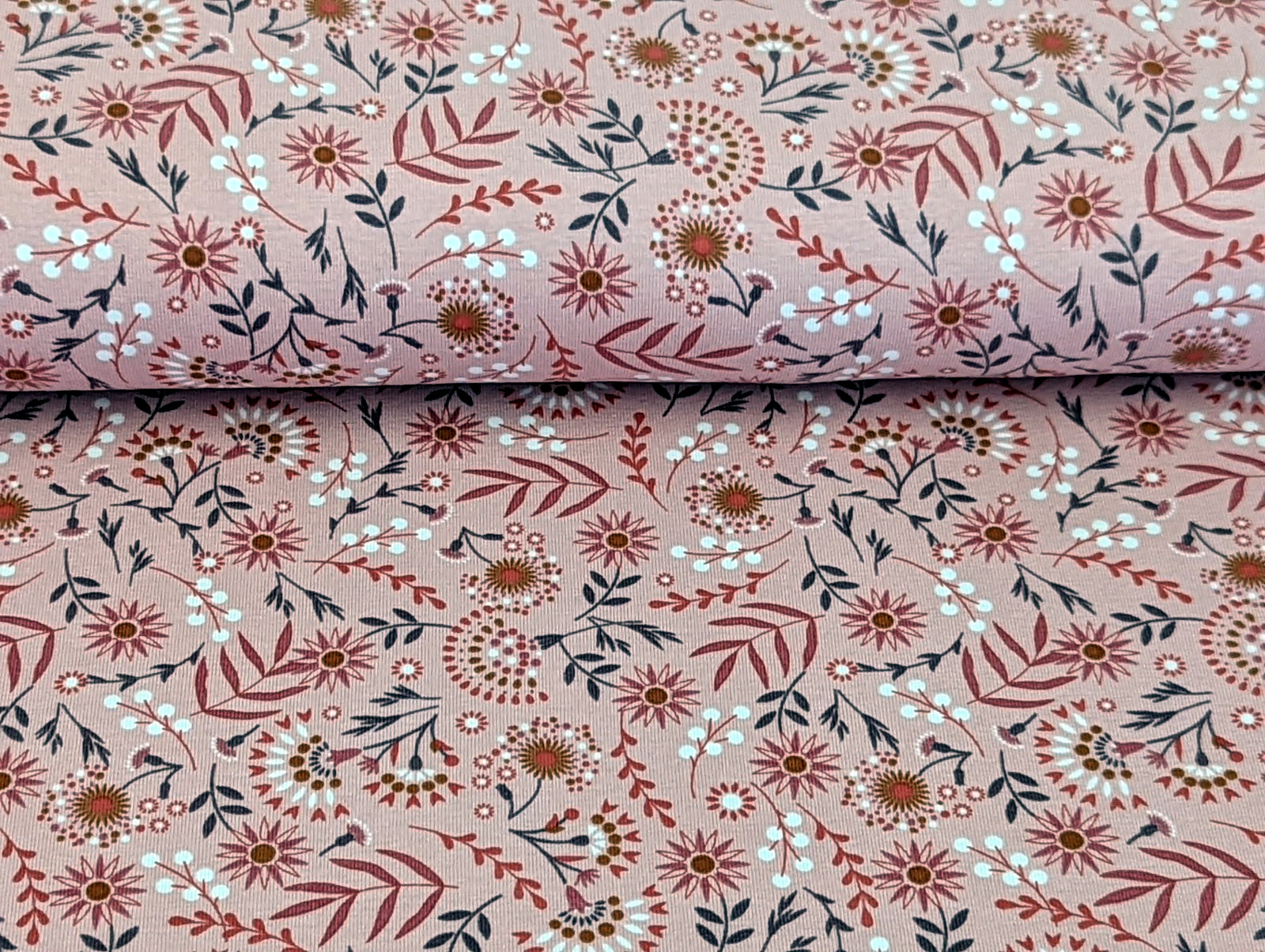 Baumwolljersey Blumenmuster mit Zweige auf Poudre ( Hellrosa )