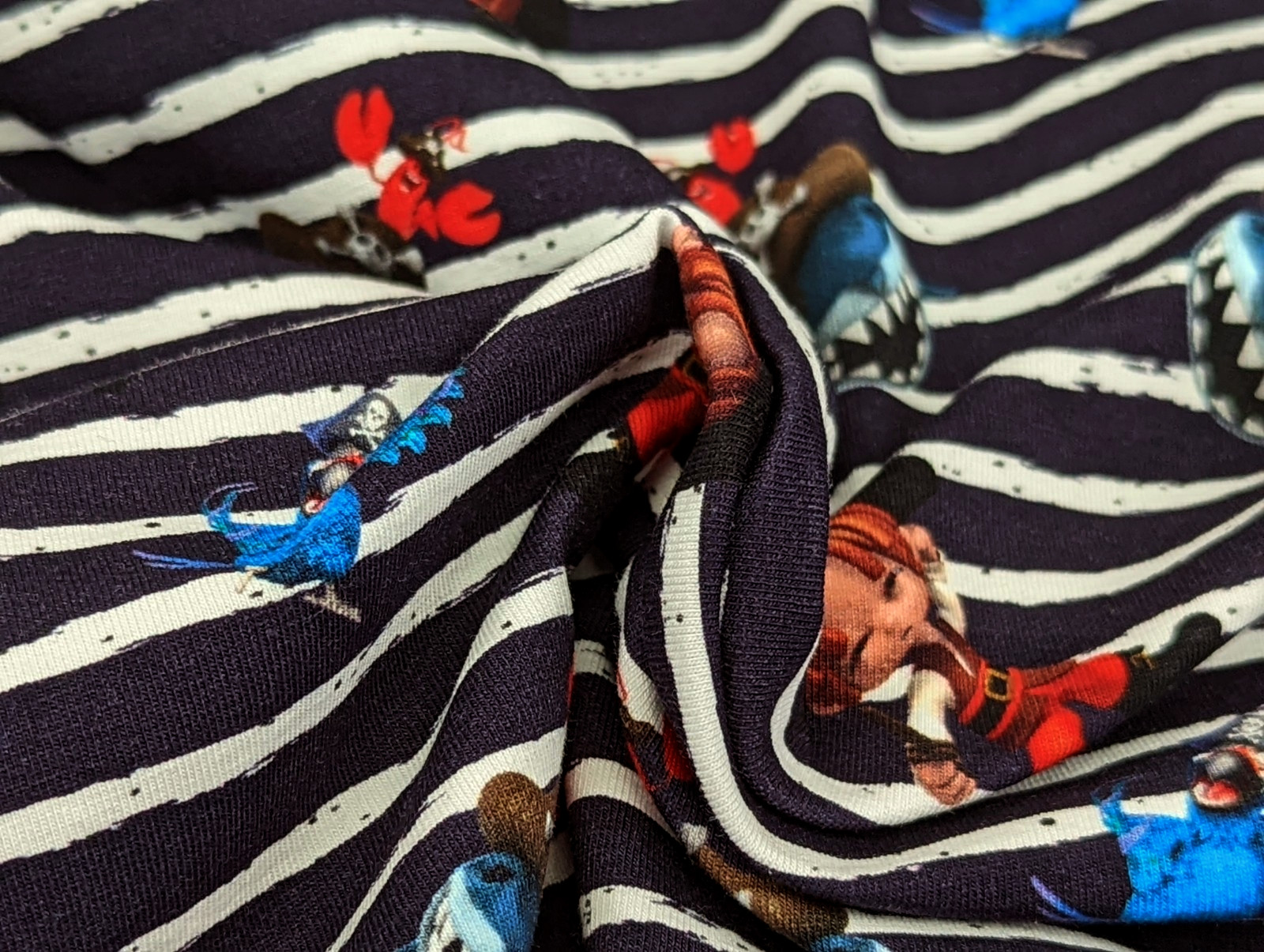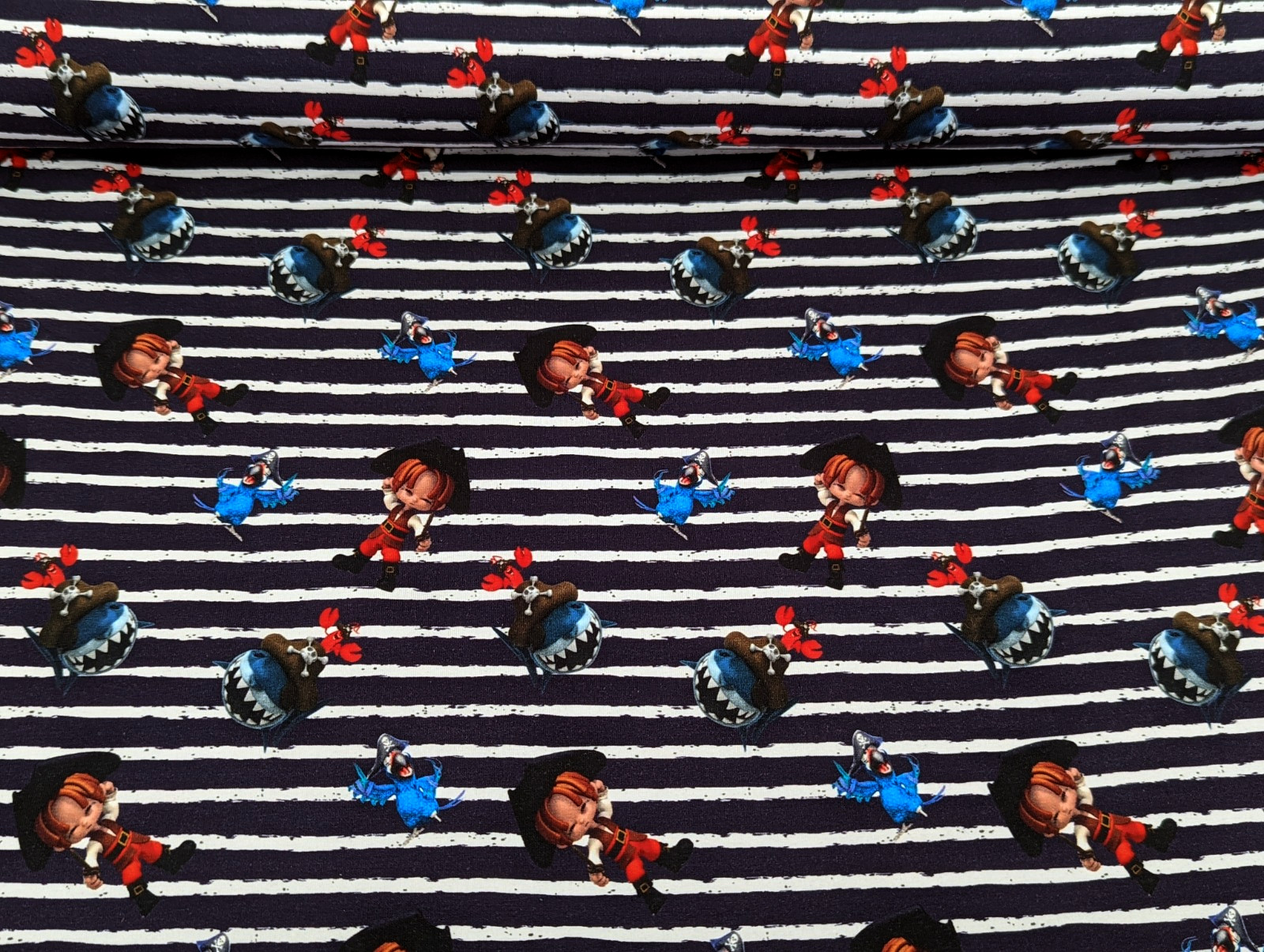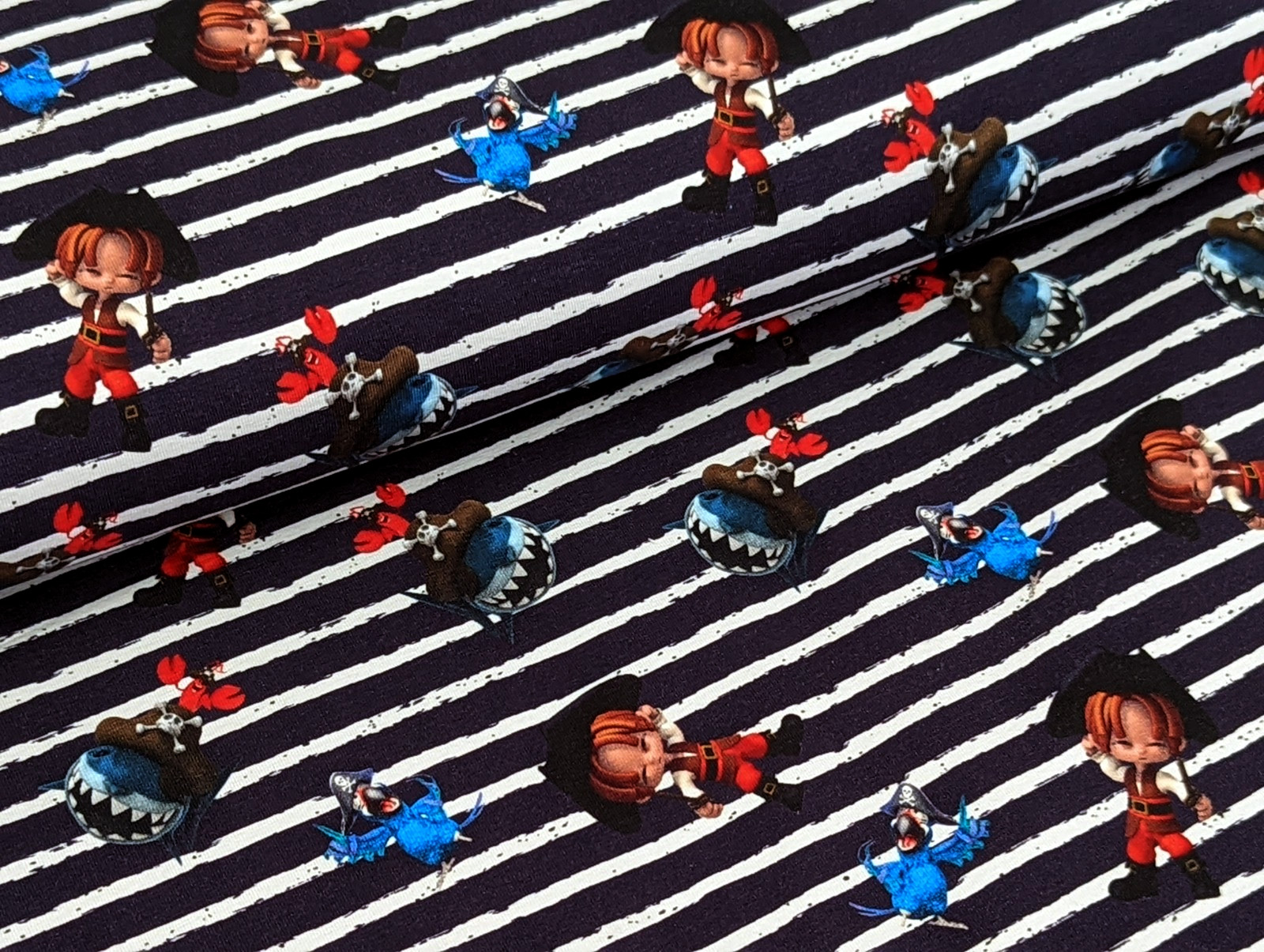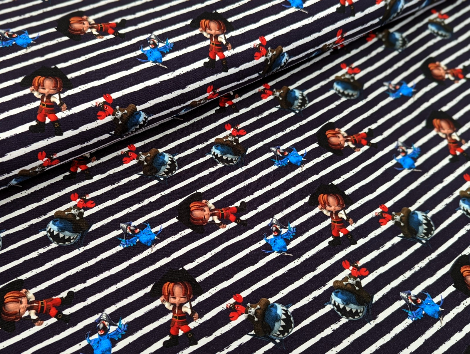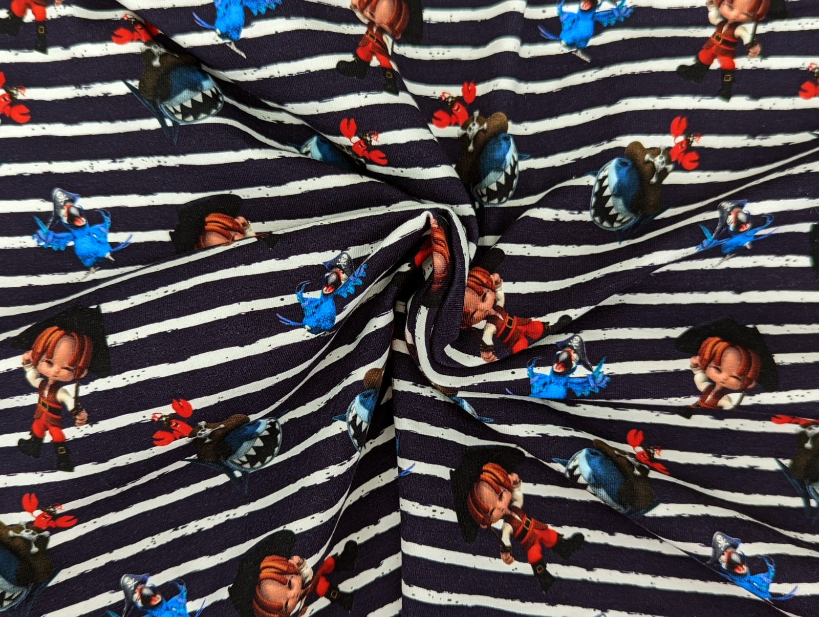 Baumwolljersey Digital Mini Pirat mit Hai und Papagei Nachtblau