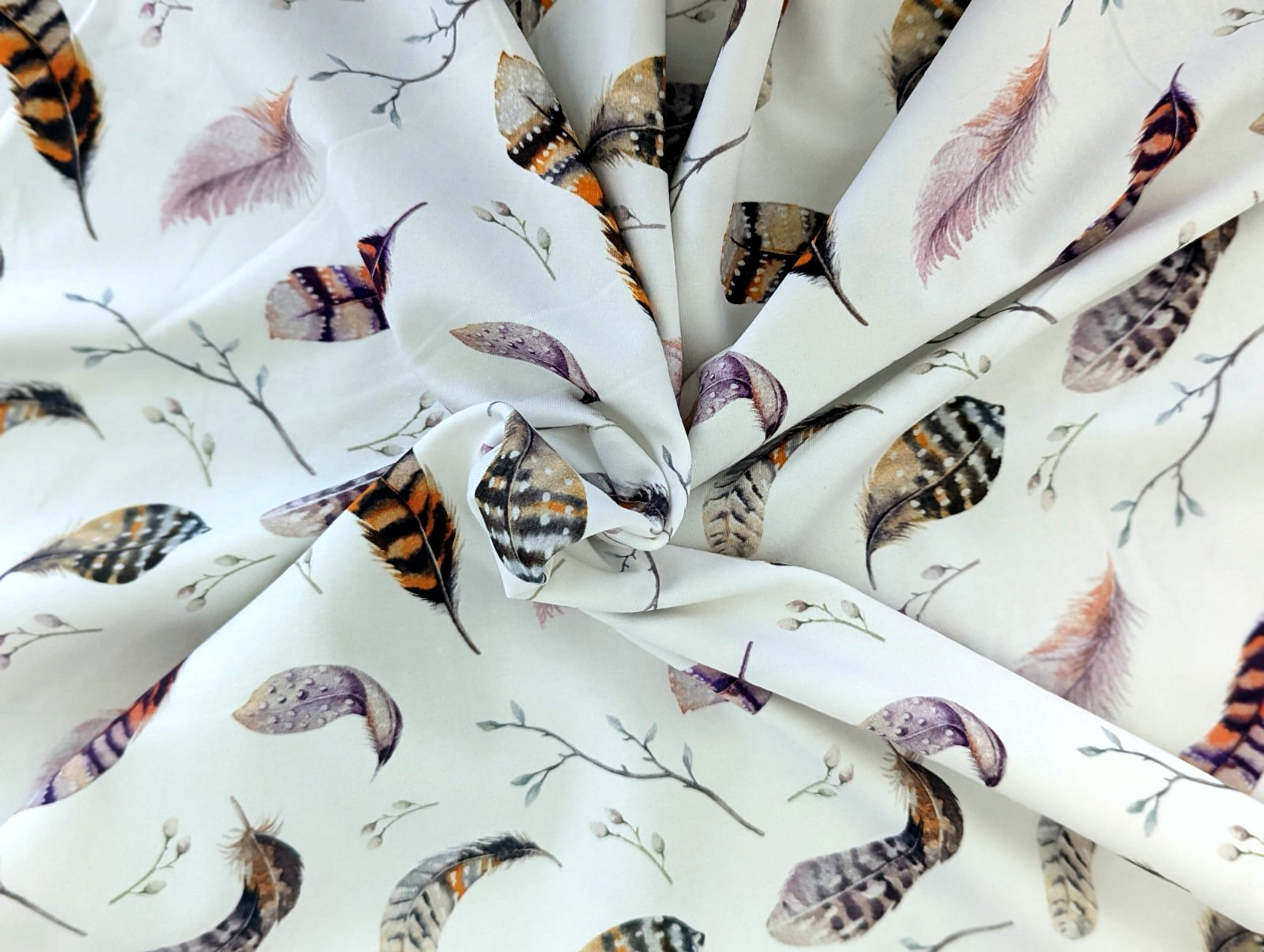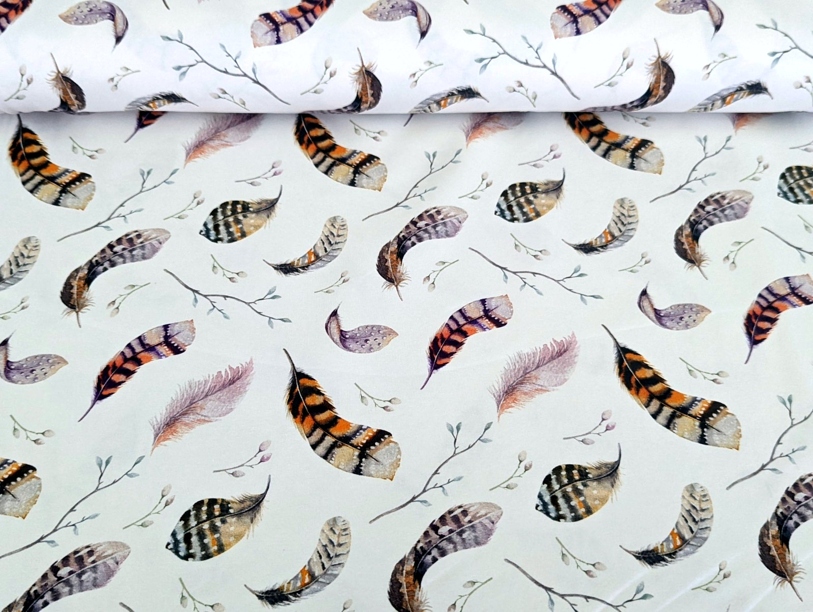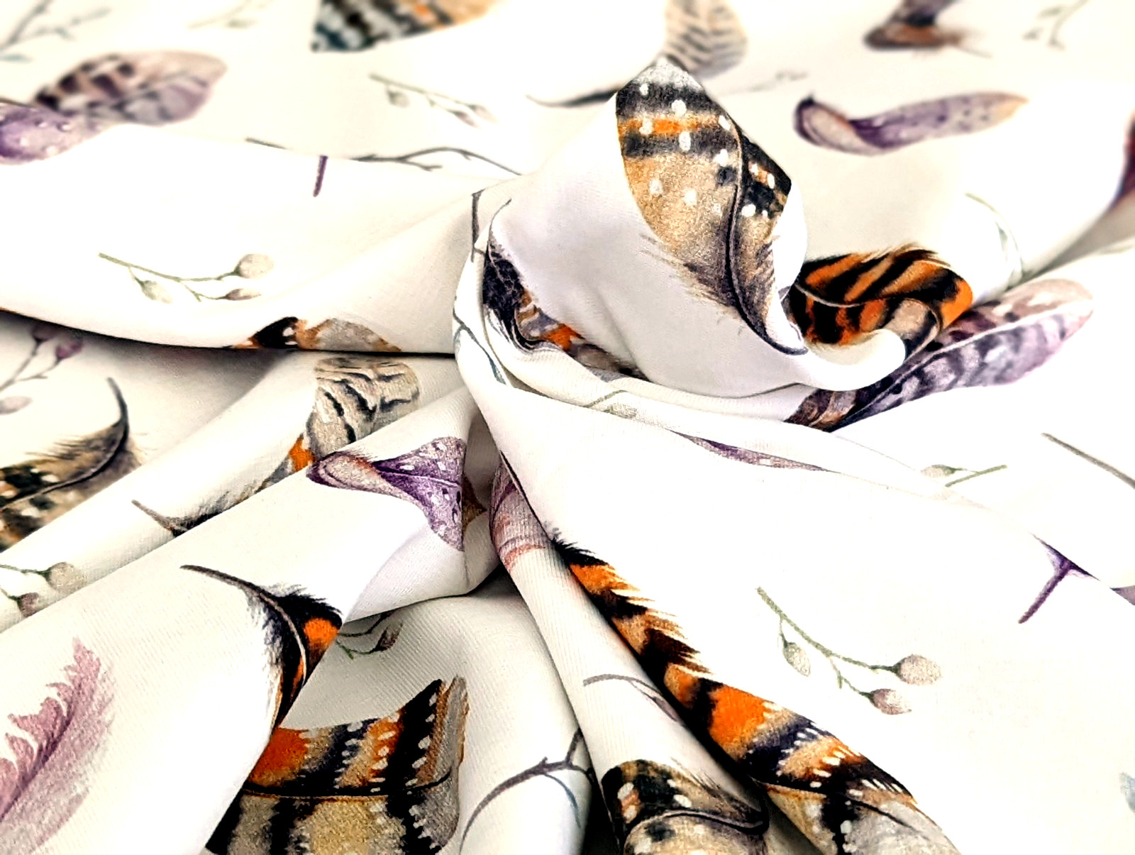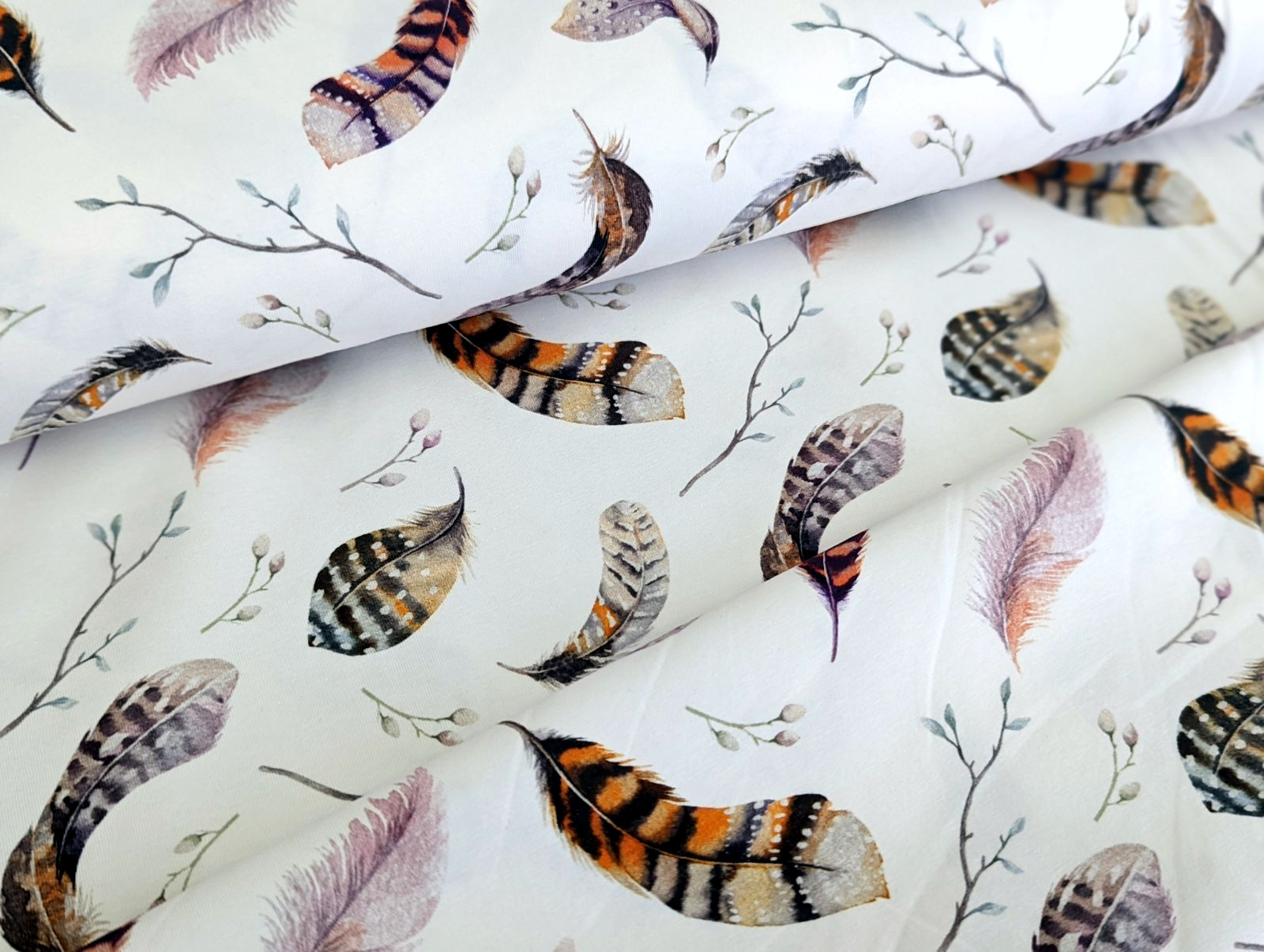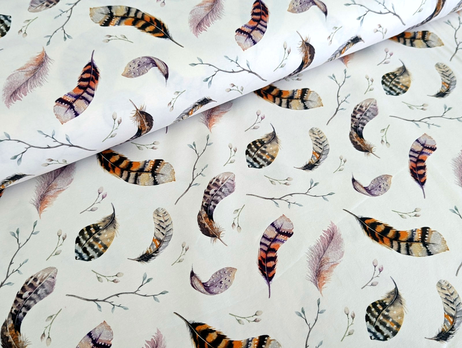 Baumwolljersey Große Federn mit kleinen Zweigen Cremeweiß