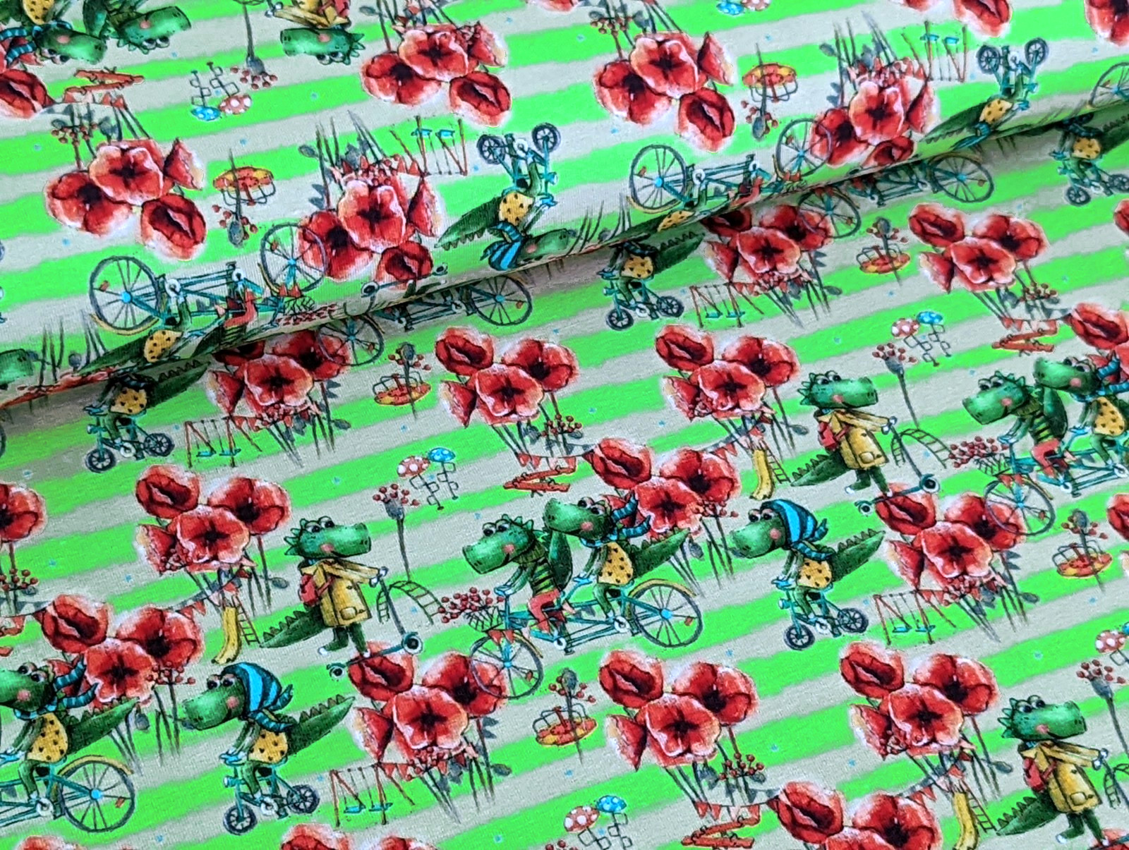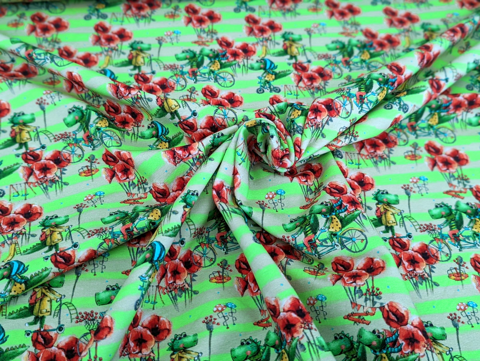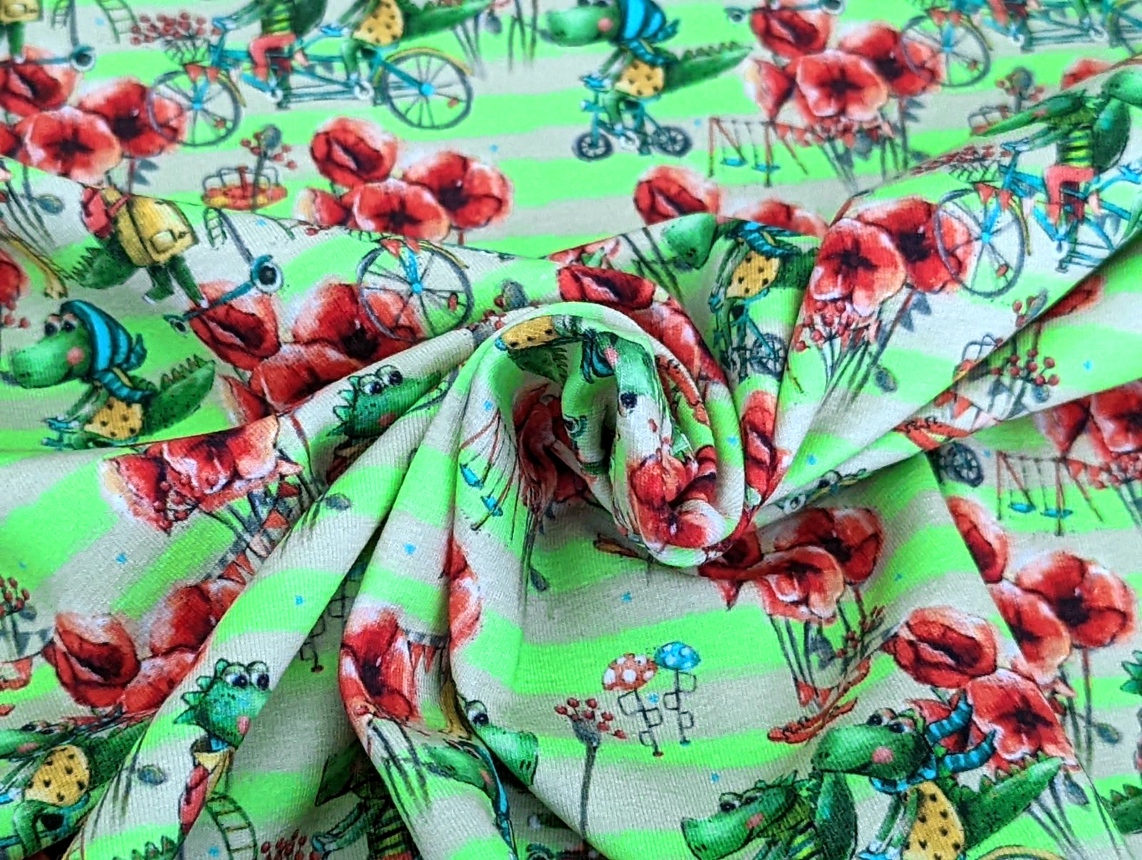 Baumwolljersey Krokodil Freunde in den Ferien Mohnblume Grün