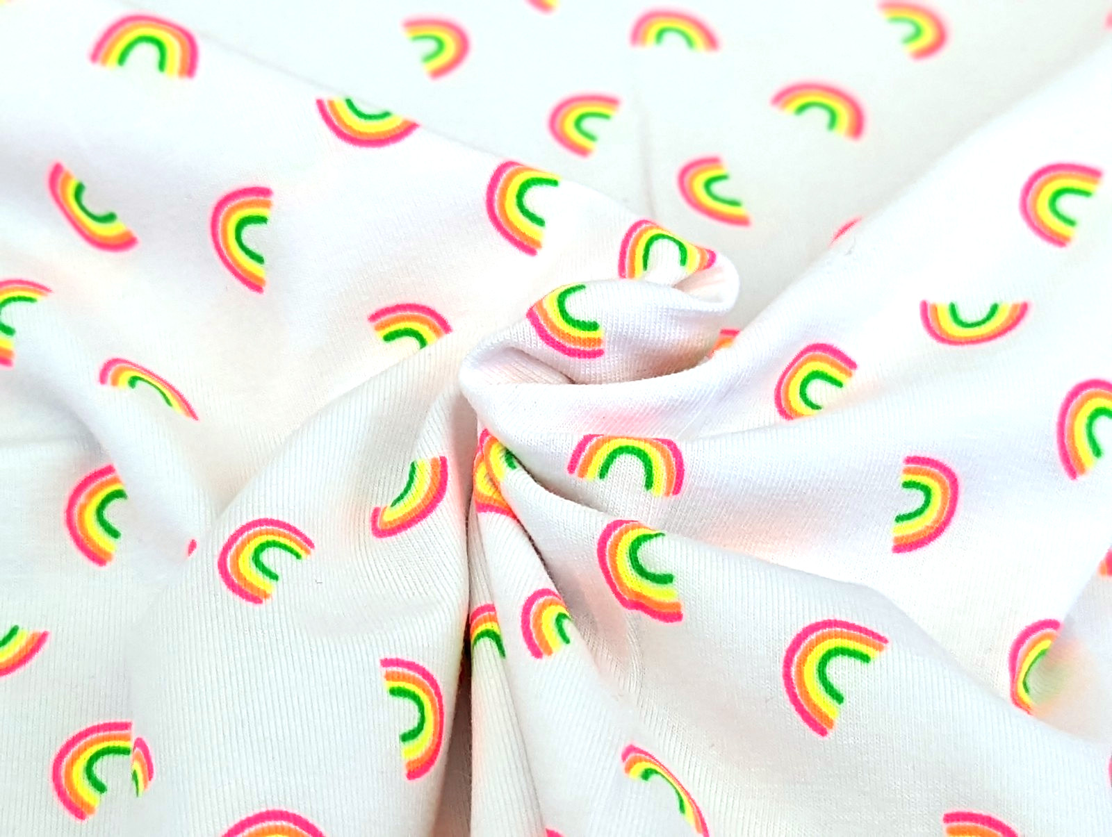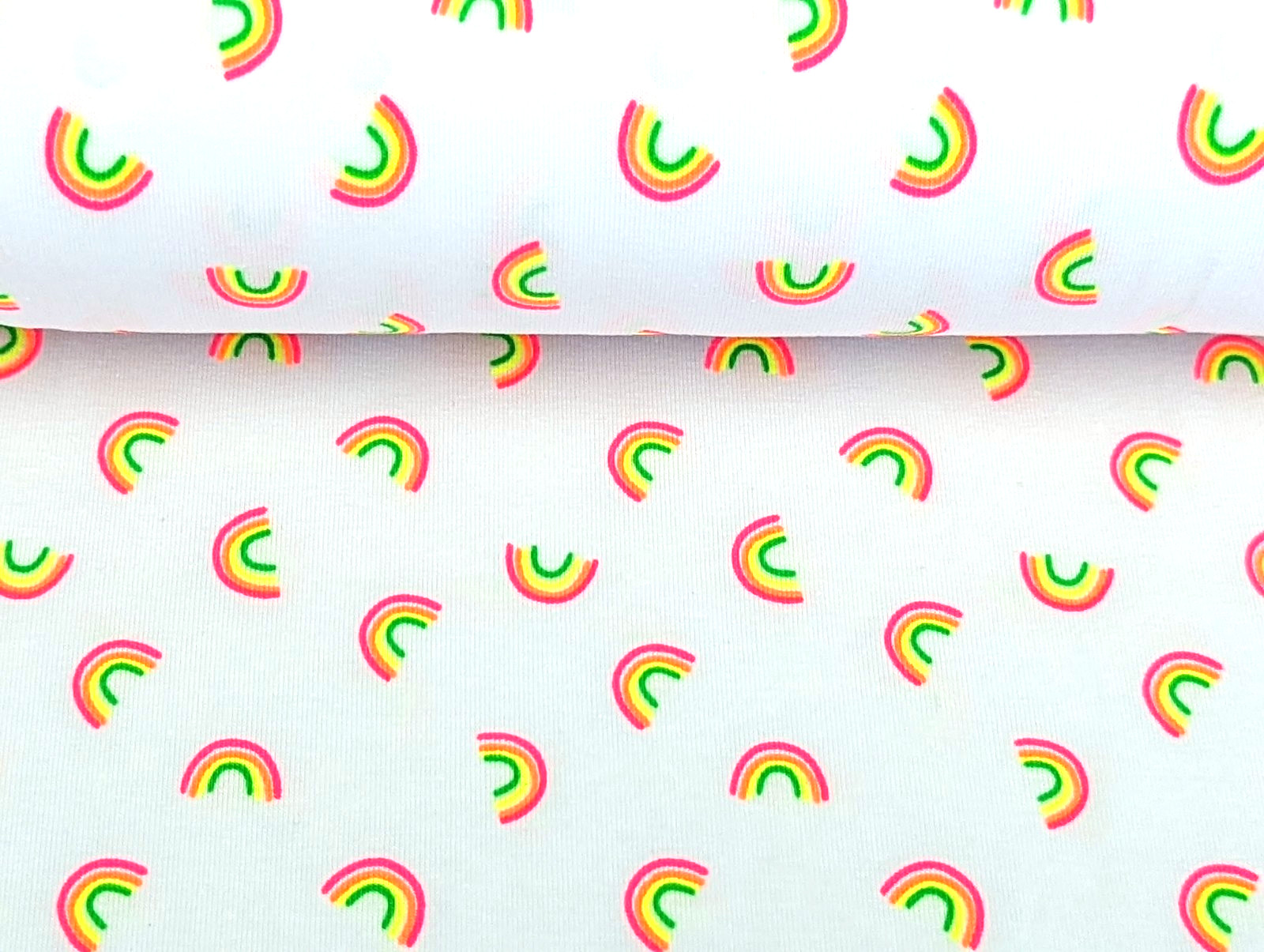 Baumwolljersey Neon Regenbögen auf Weiß