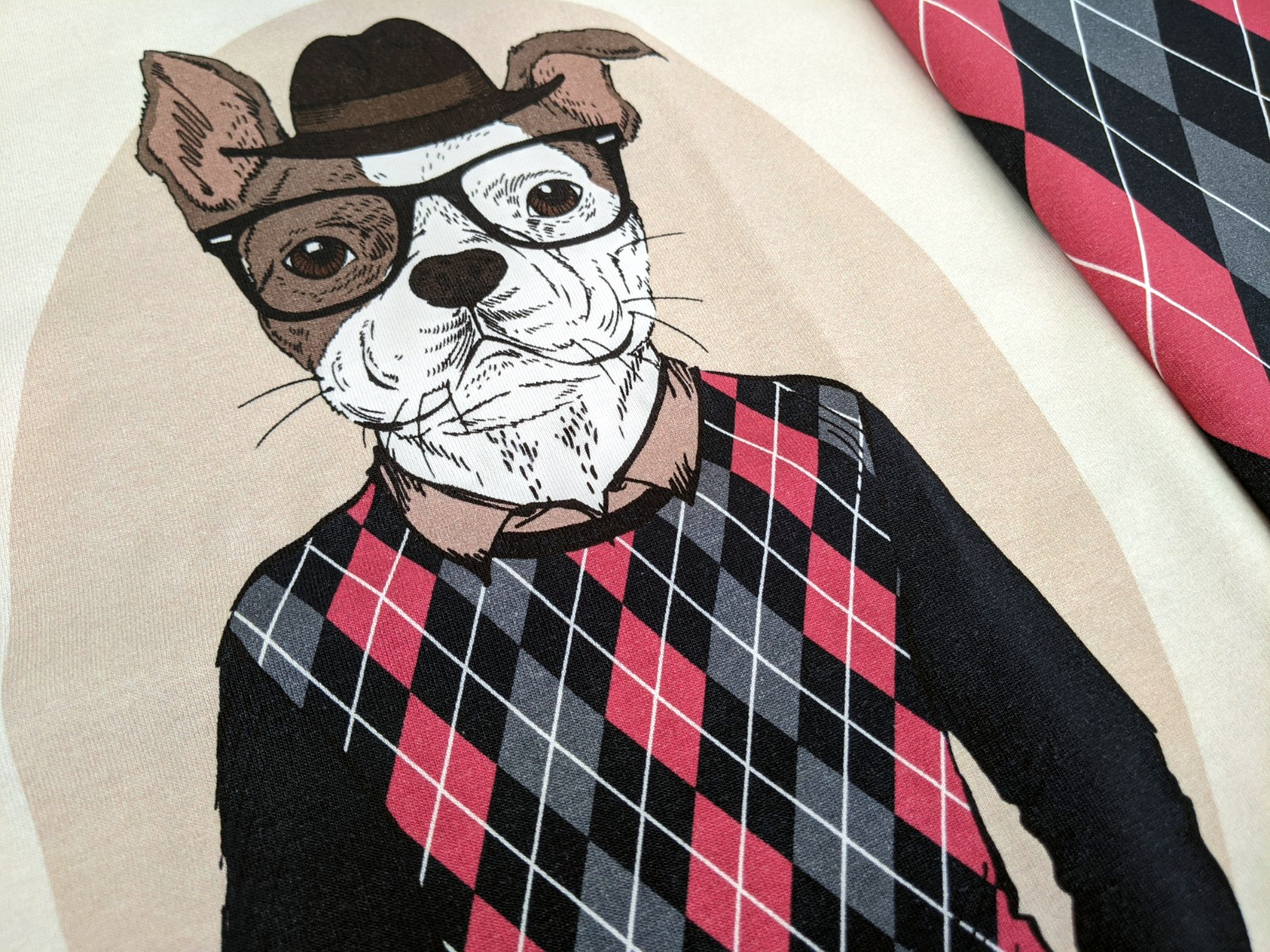 Baumwolljersey Panel ca 50 cm Schlauer Hund