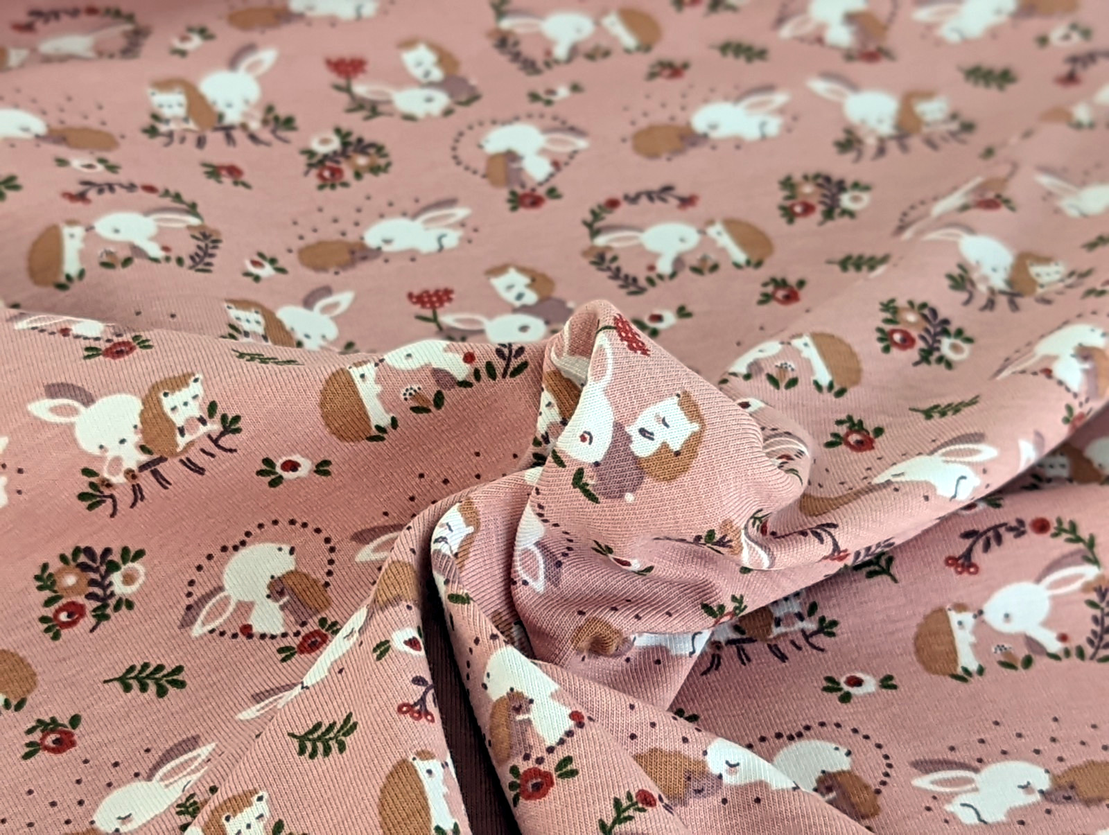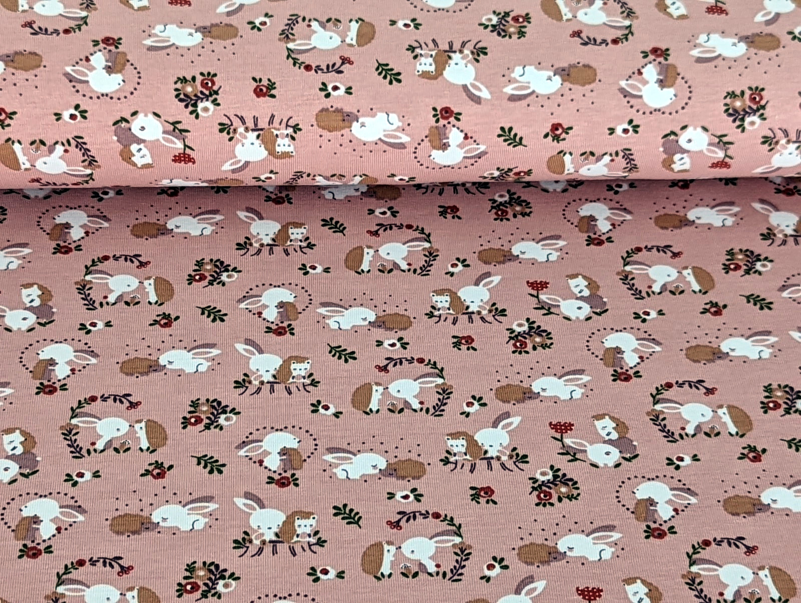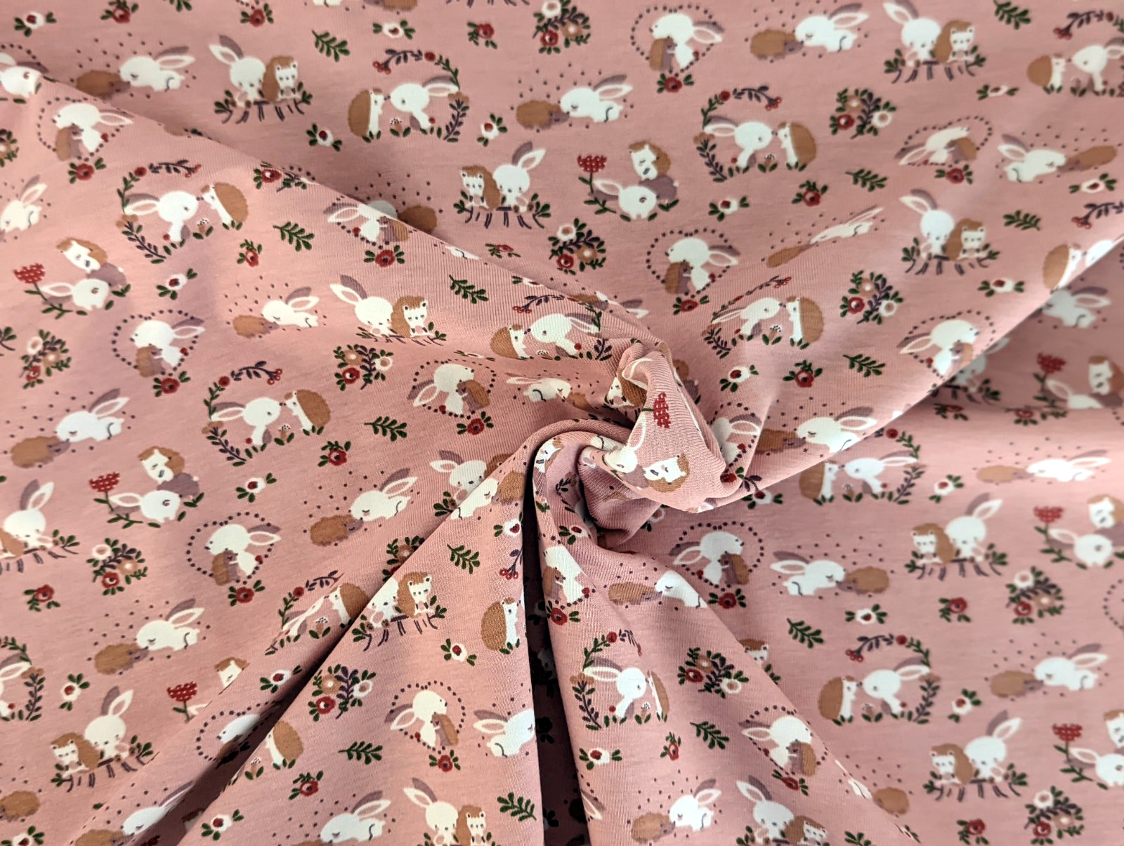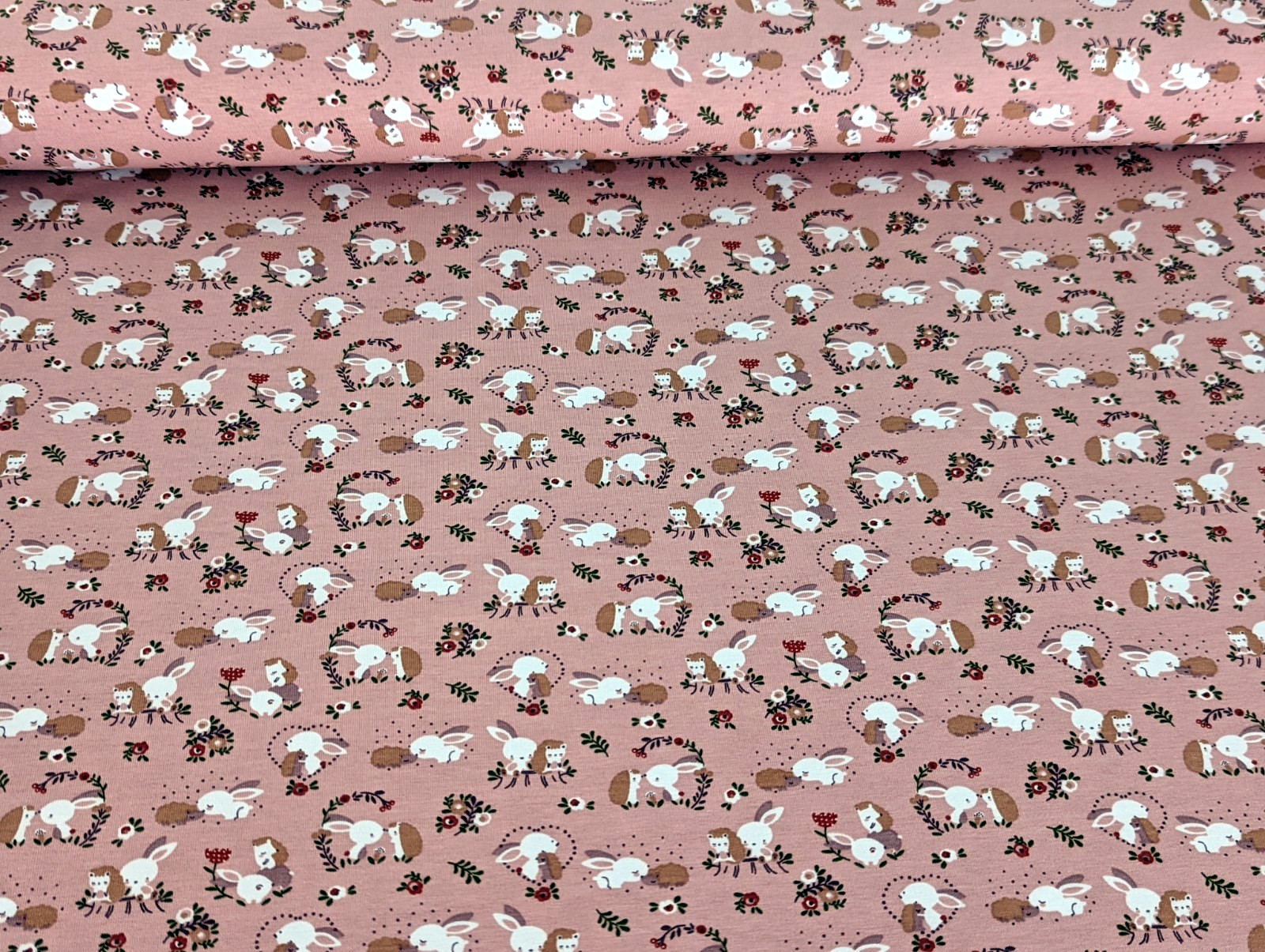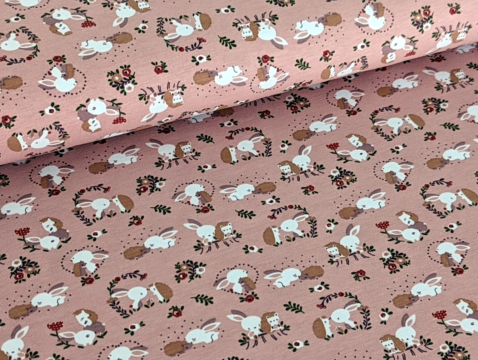 Baumwolljersey Sweet Hase mit Igel auf Nude ( Hellrosa )
