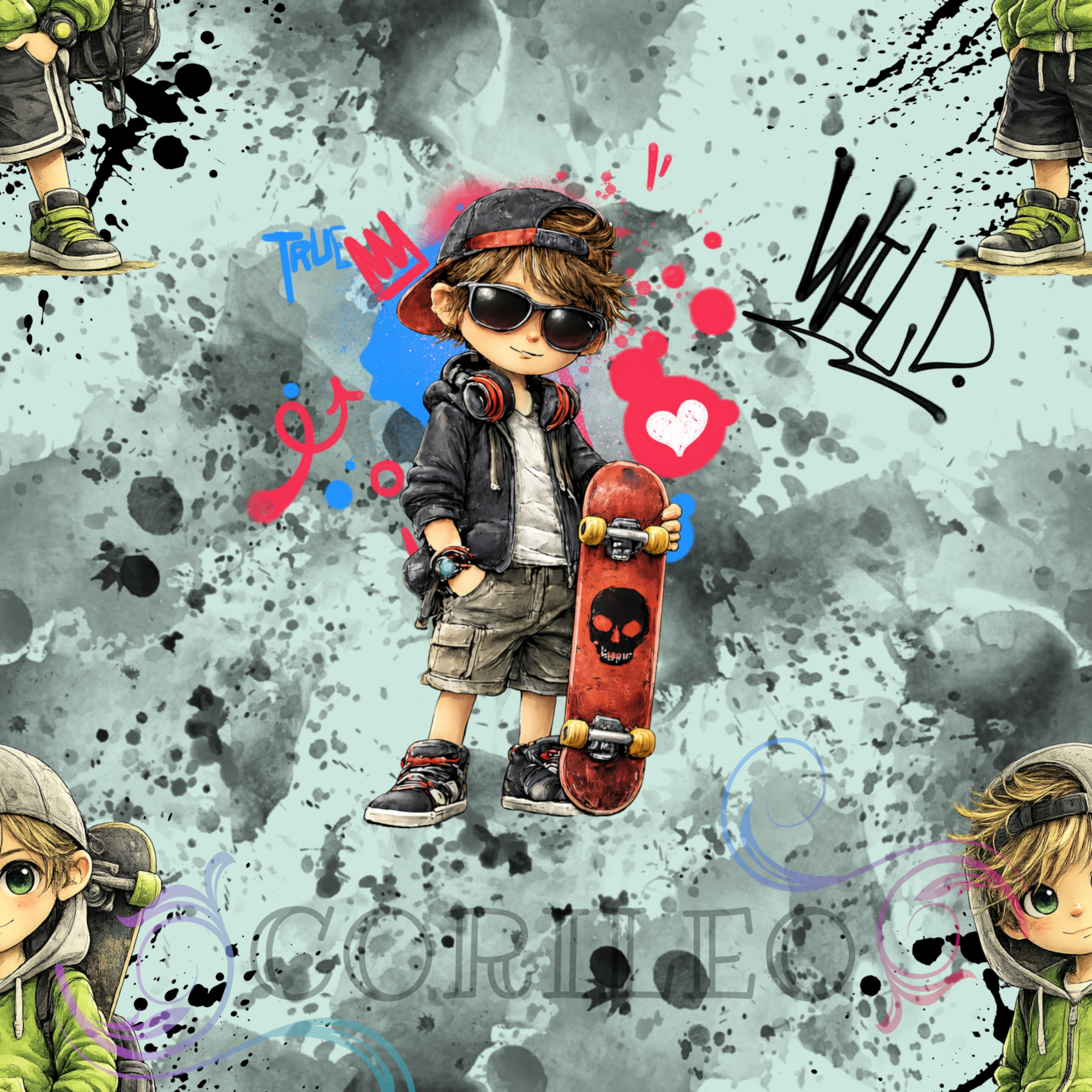 - Motiv: Junge Skateboard ca 5 x 9,5 cm