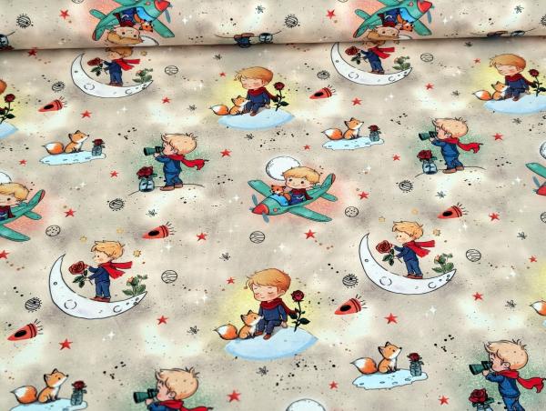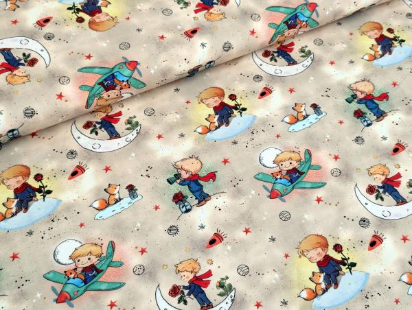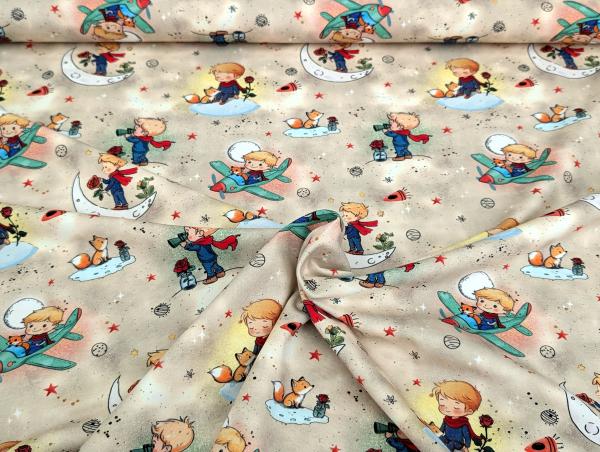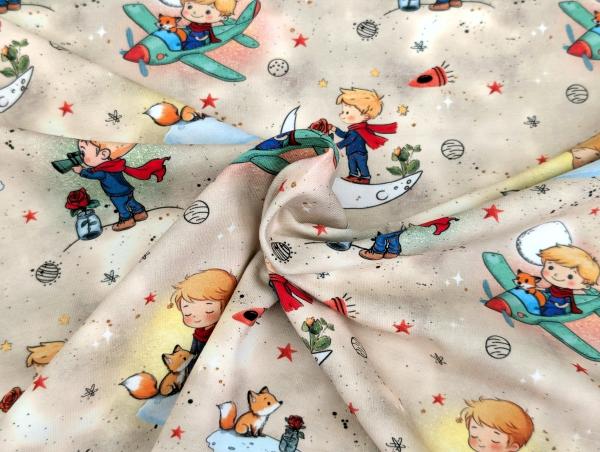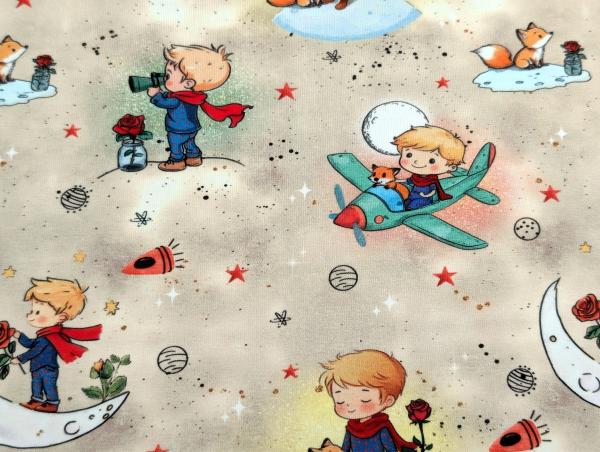 Eigenproduktion Baumwolljersey Entdecker Boy Flugzeug Fuchs Sterne auf Sand