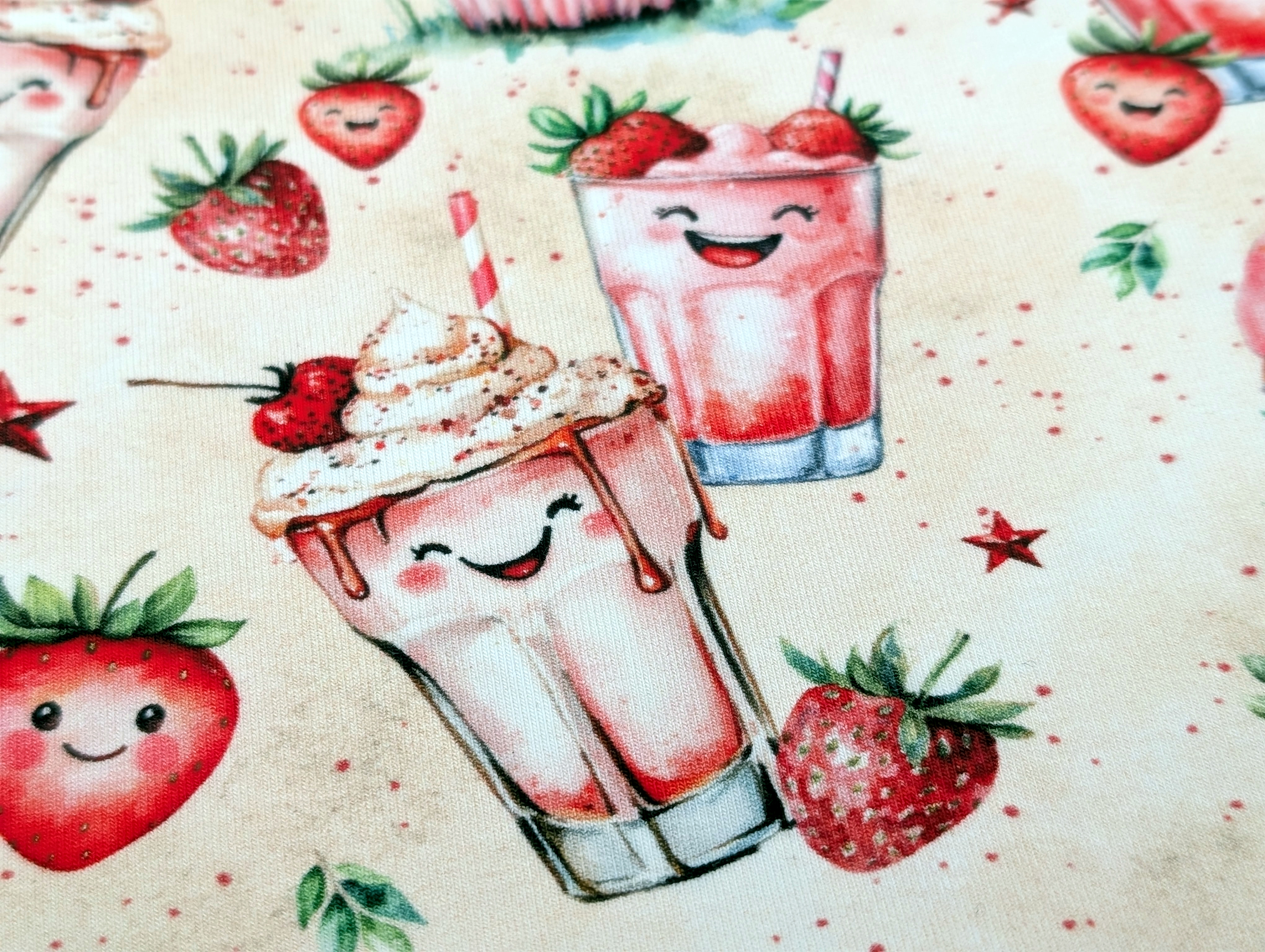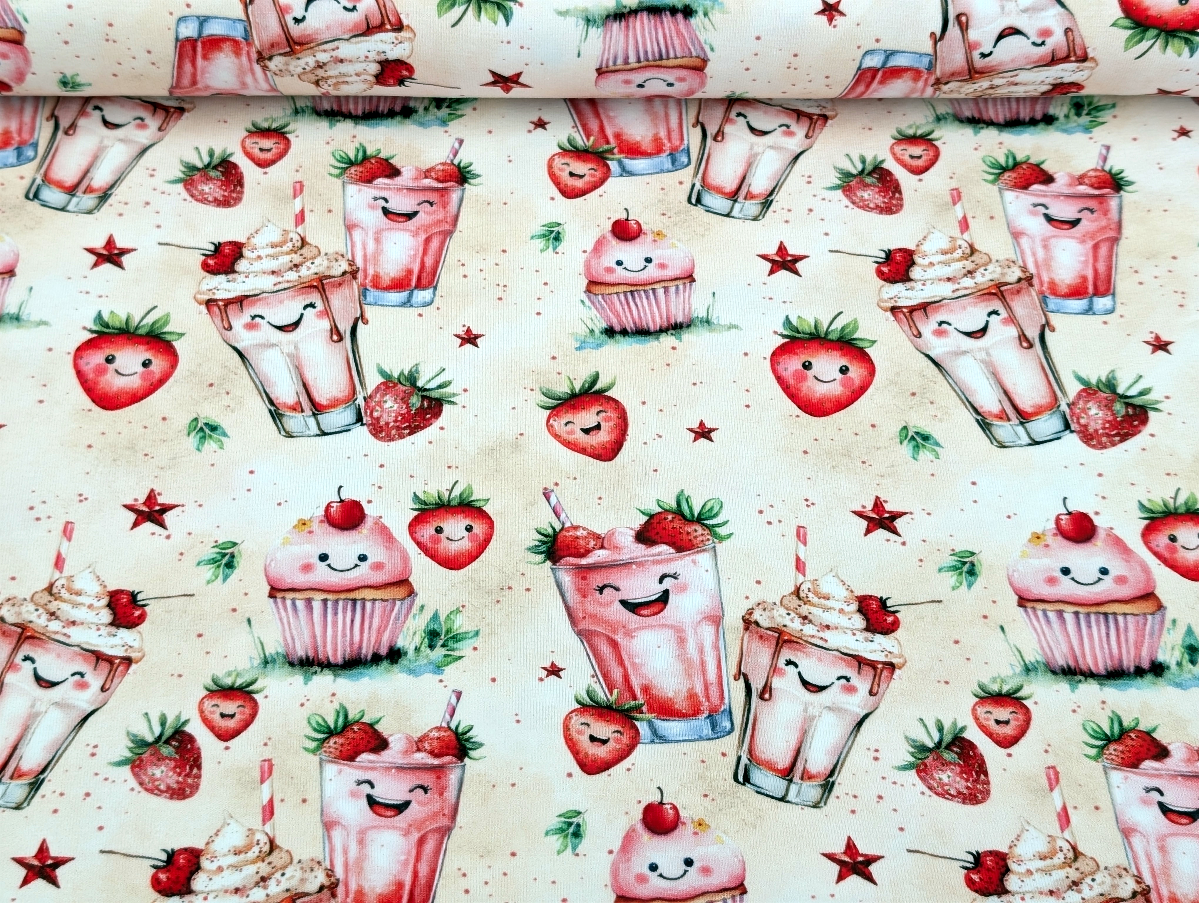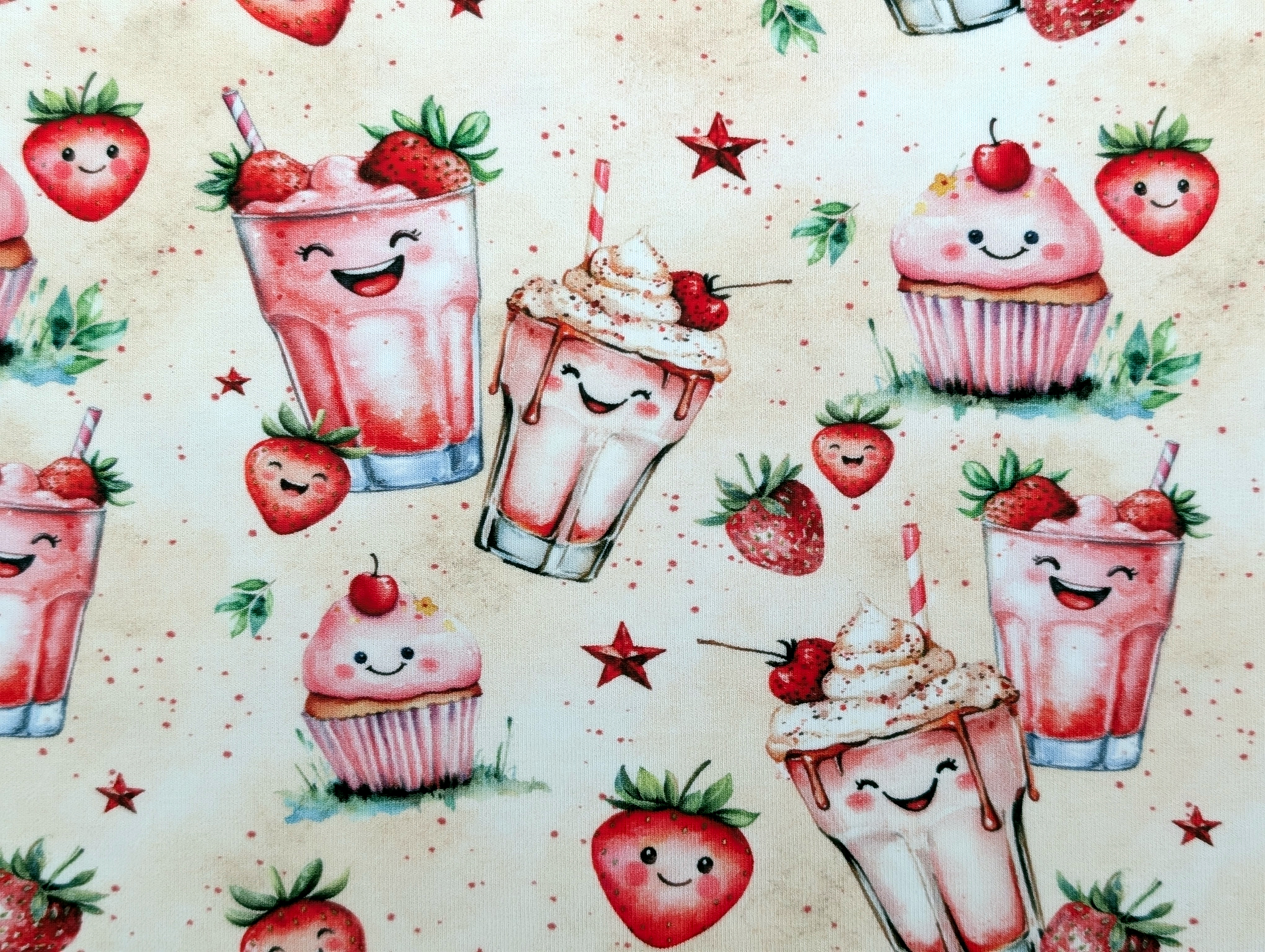 Eigenproduktion Baumwolljersey Erdbeere Shake auf Vanille