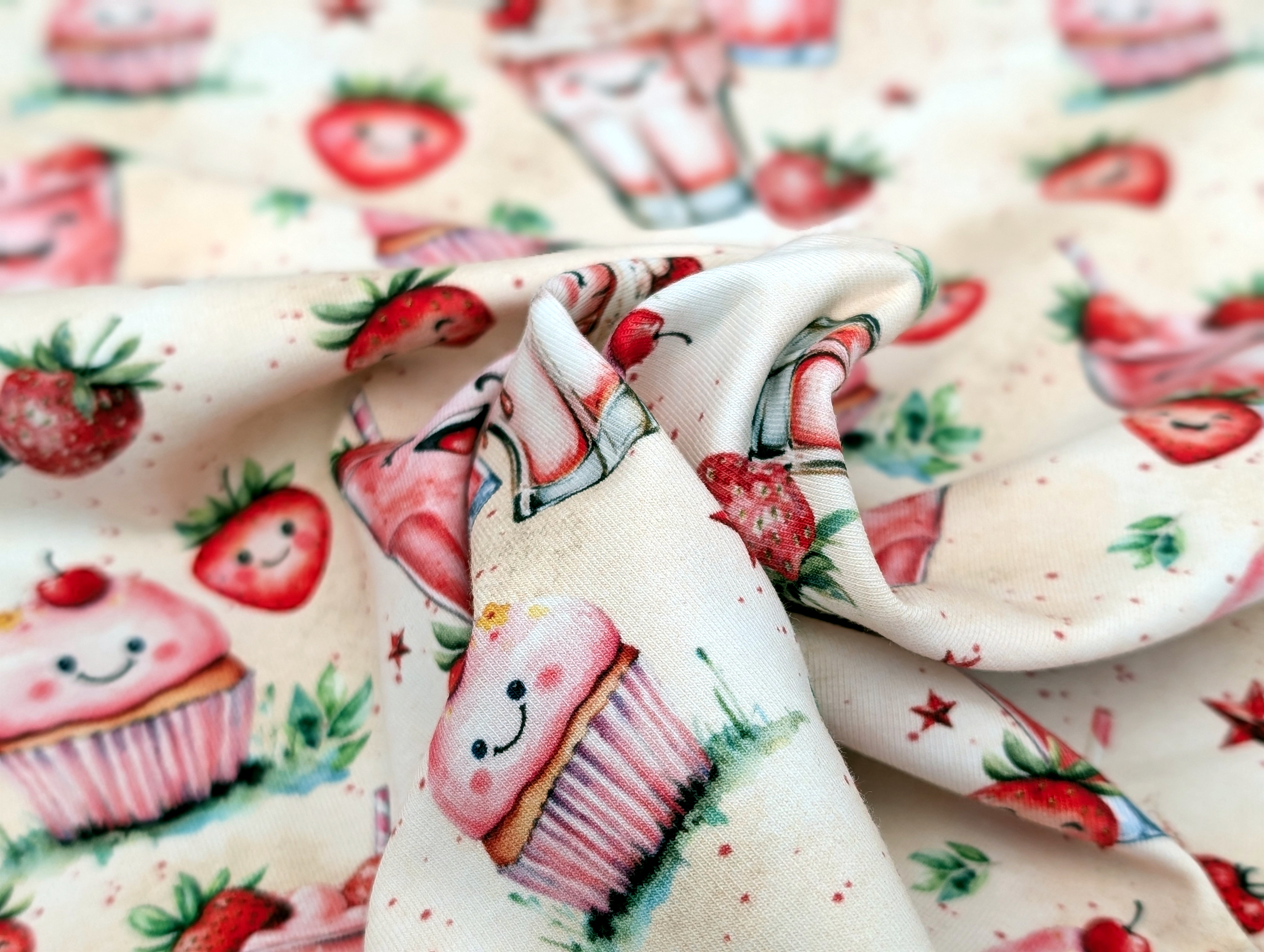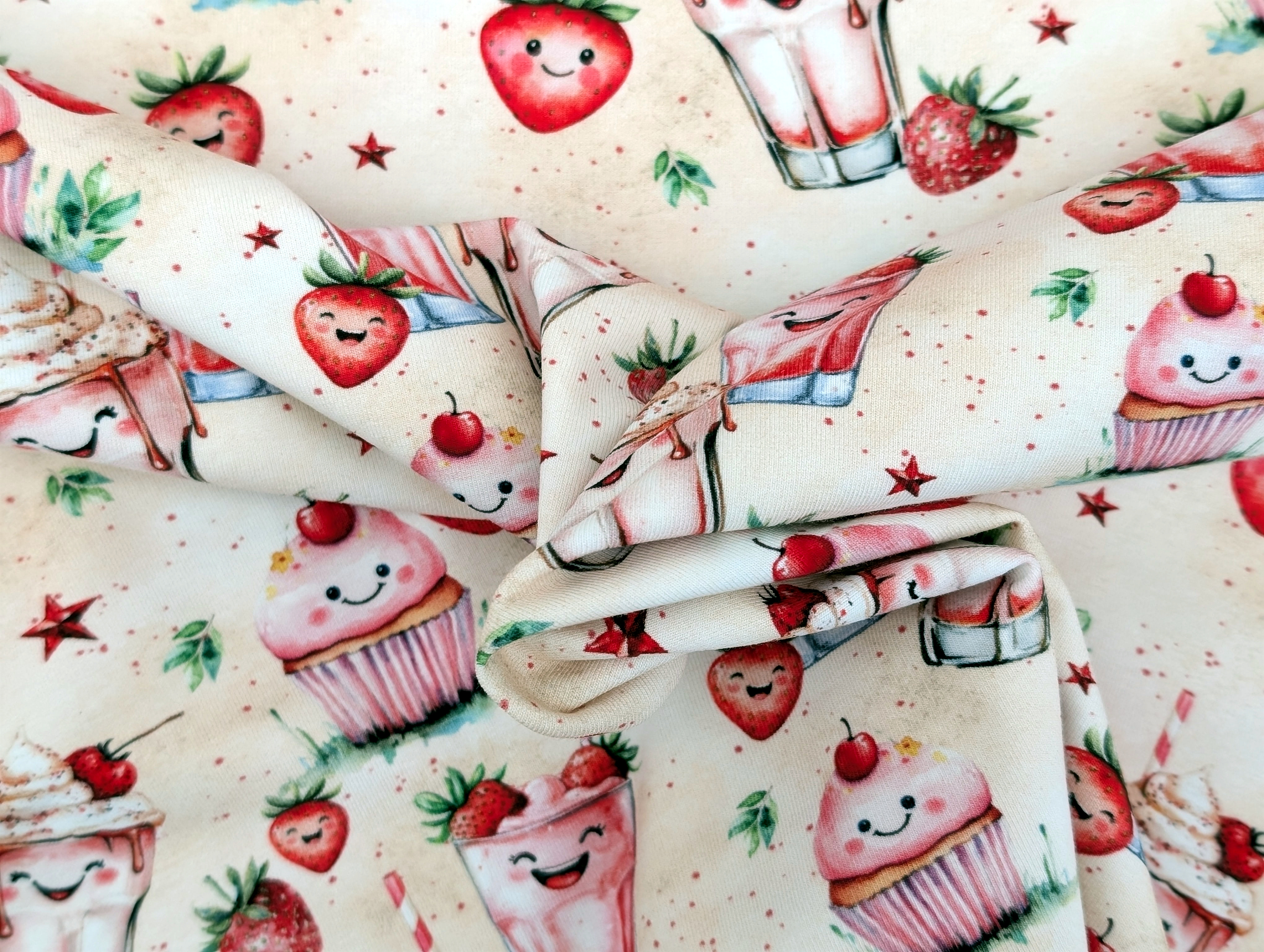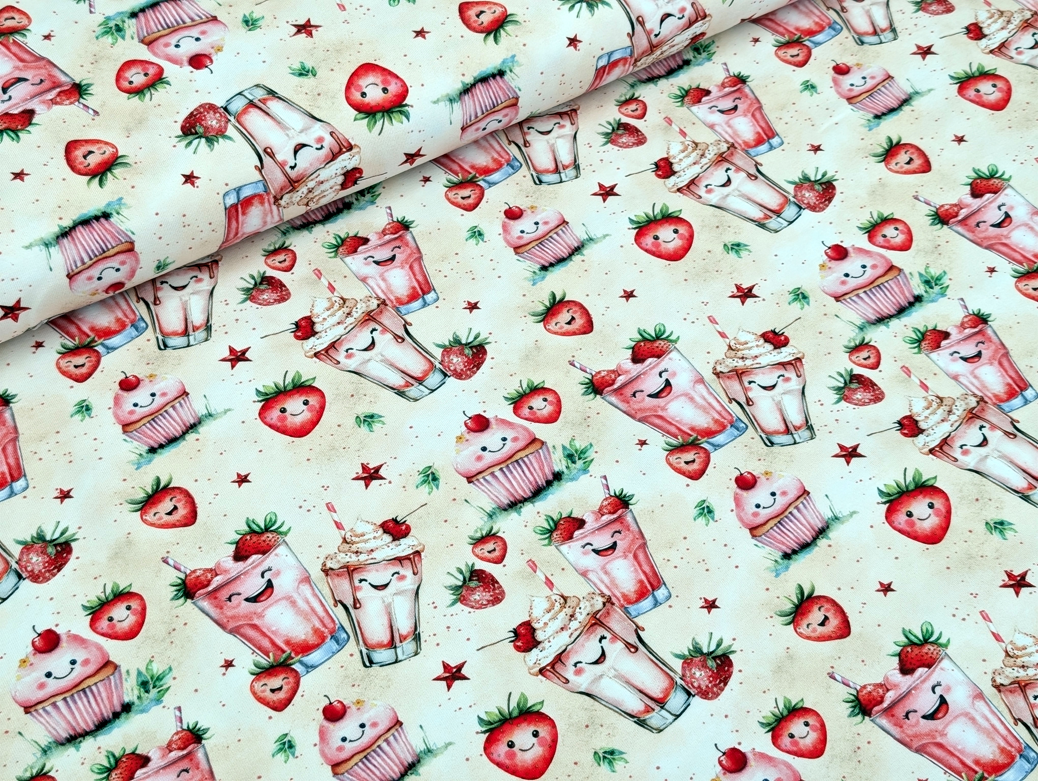 Eigenproduktion Baumwolljersey Erdbeere Shake auf Vanille
