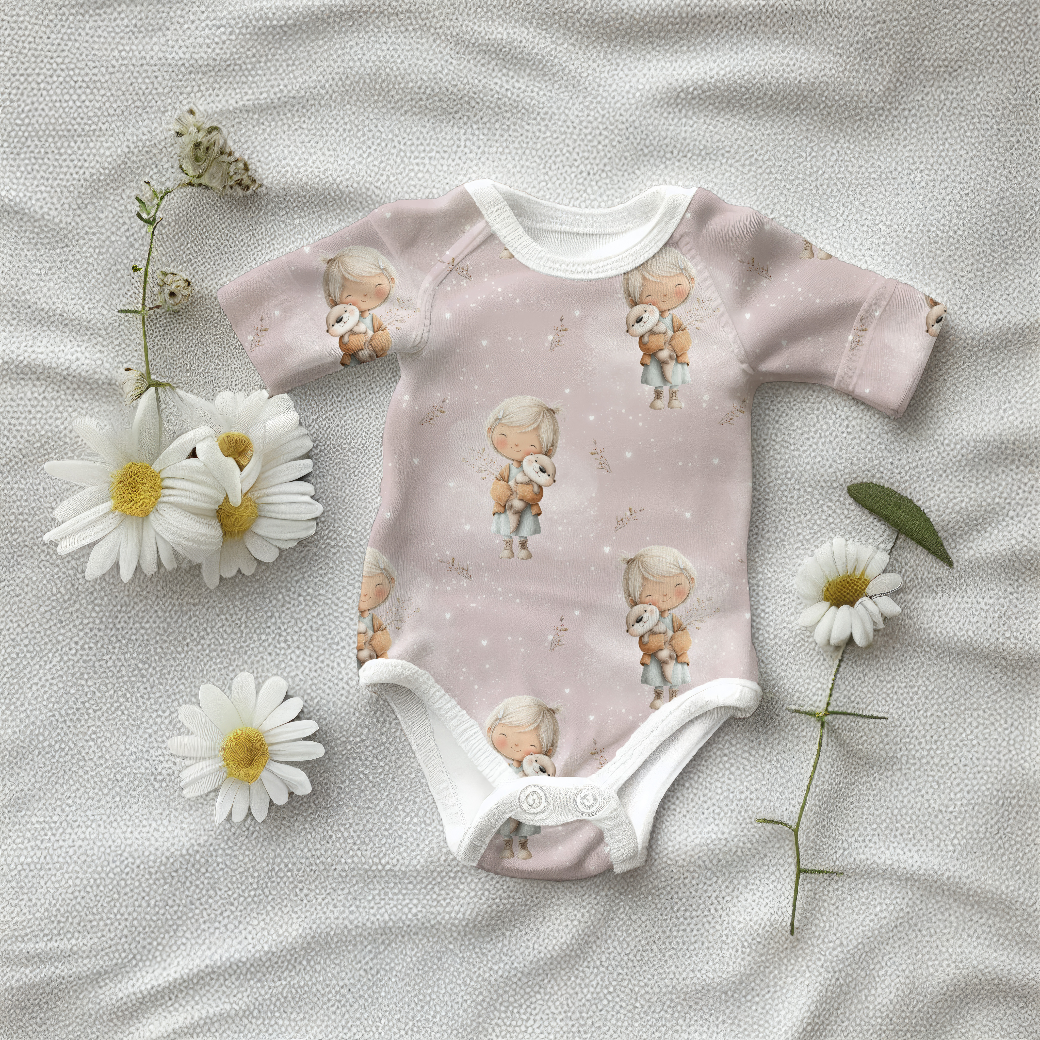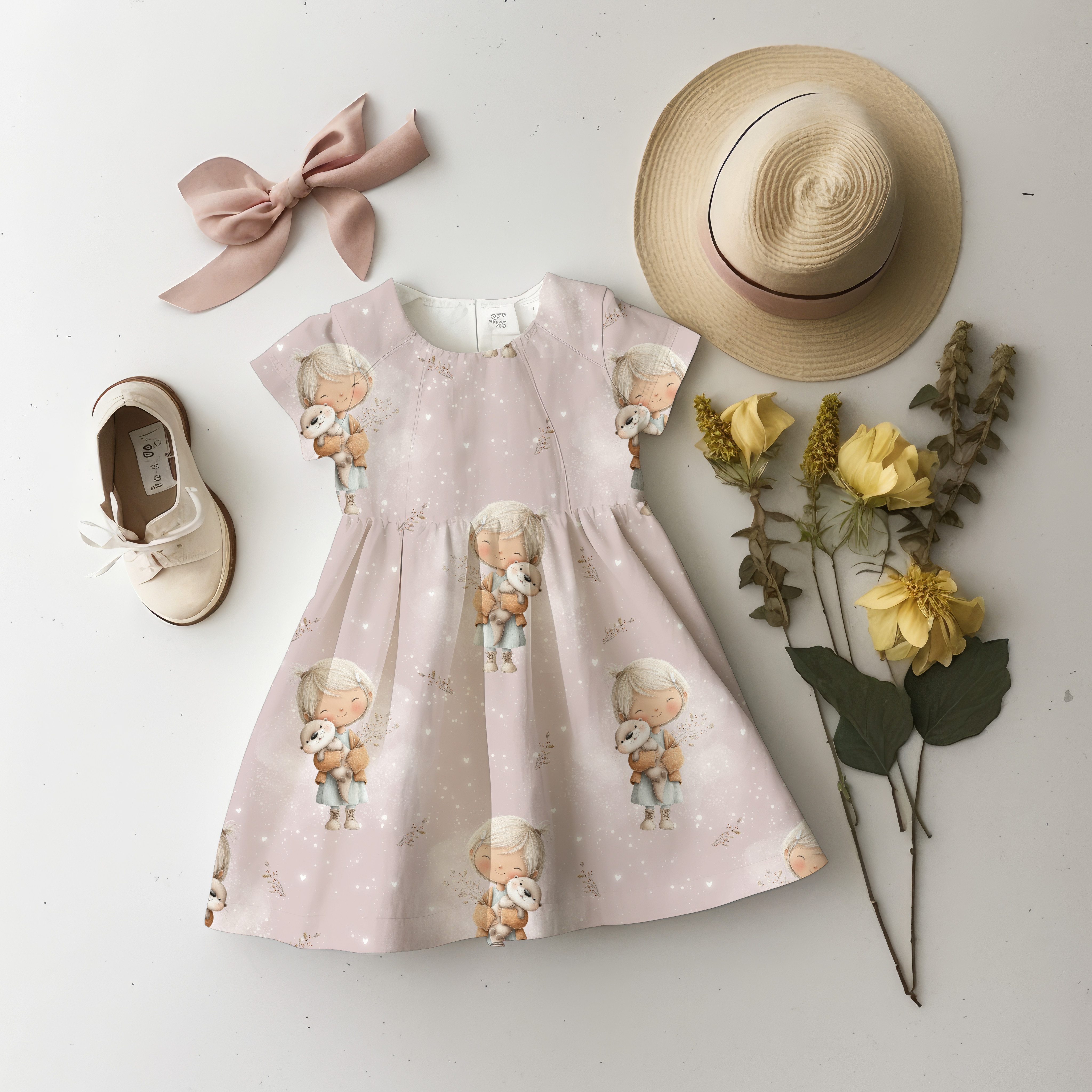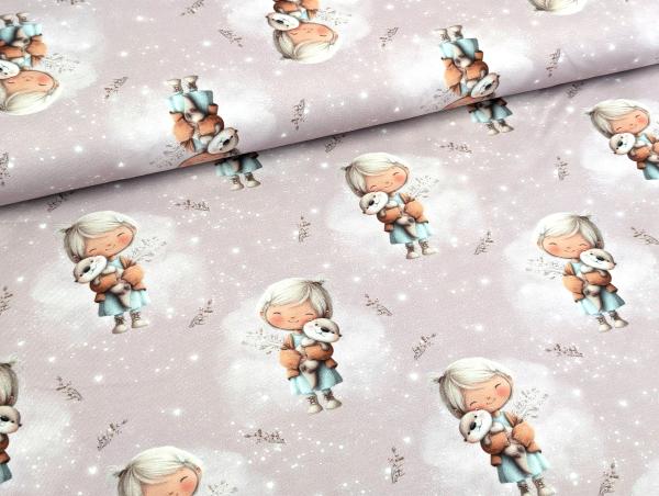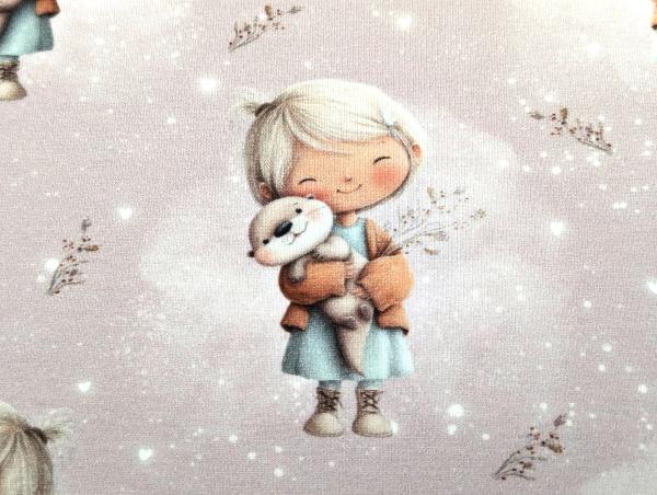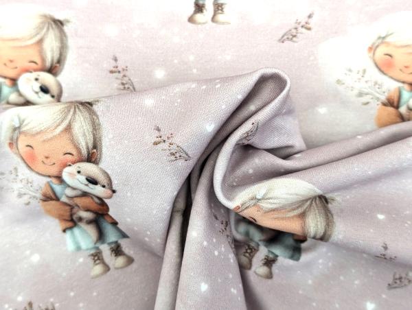 Eigenproduktion Baumwolljersey Mädchen mit ihrem Otter auf Altrosa