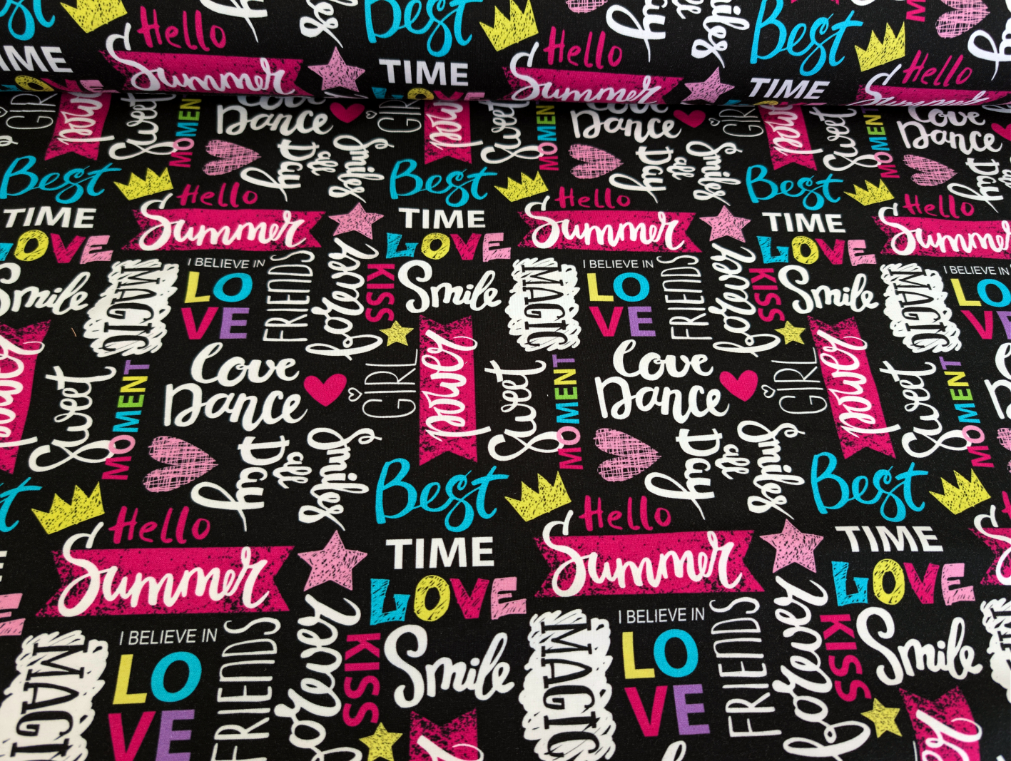 Eigenproduktion Baumwolljersey Magic Girl Summer auf Schwarz