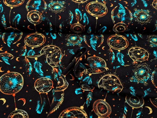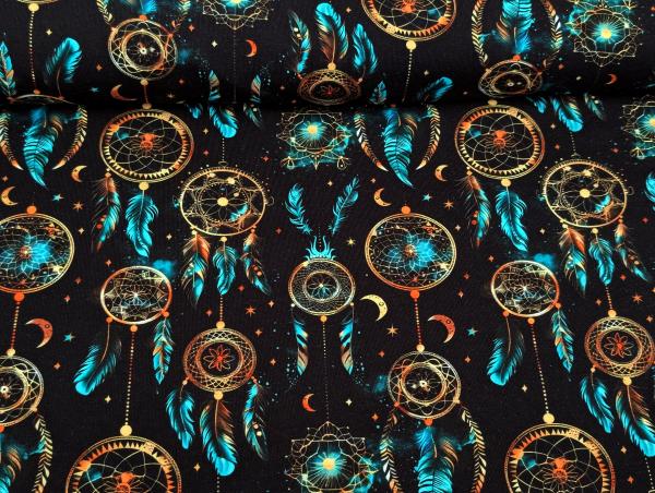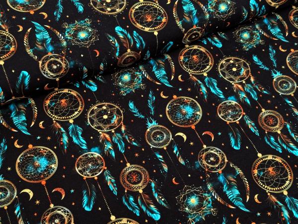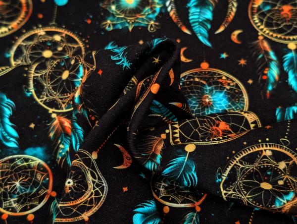 Eigenproduktion Baumwolljersey raumfänger Türkis auf Schwarz