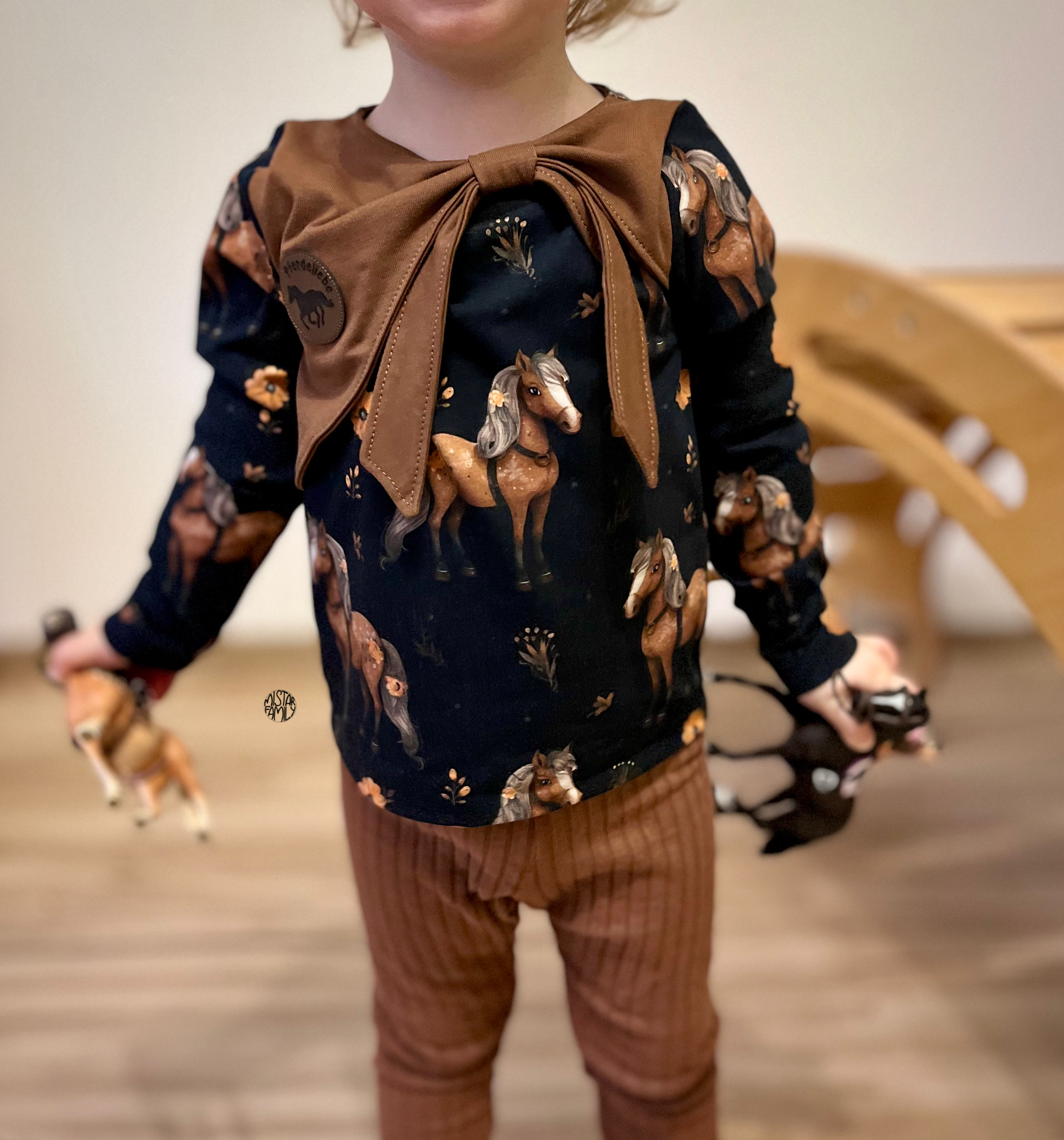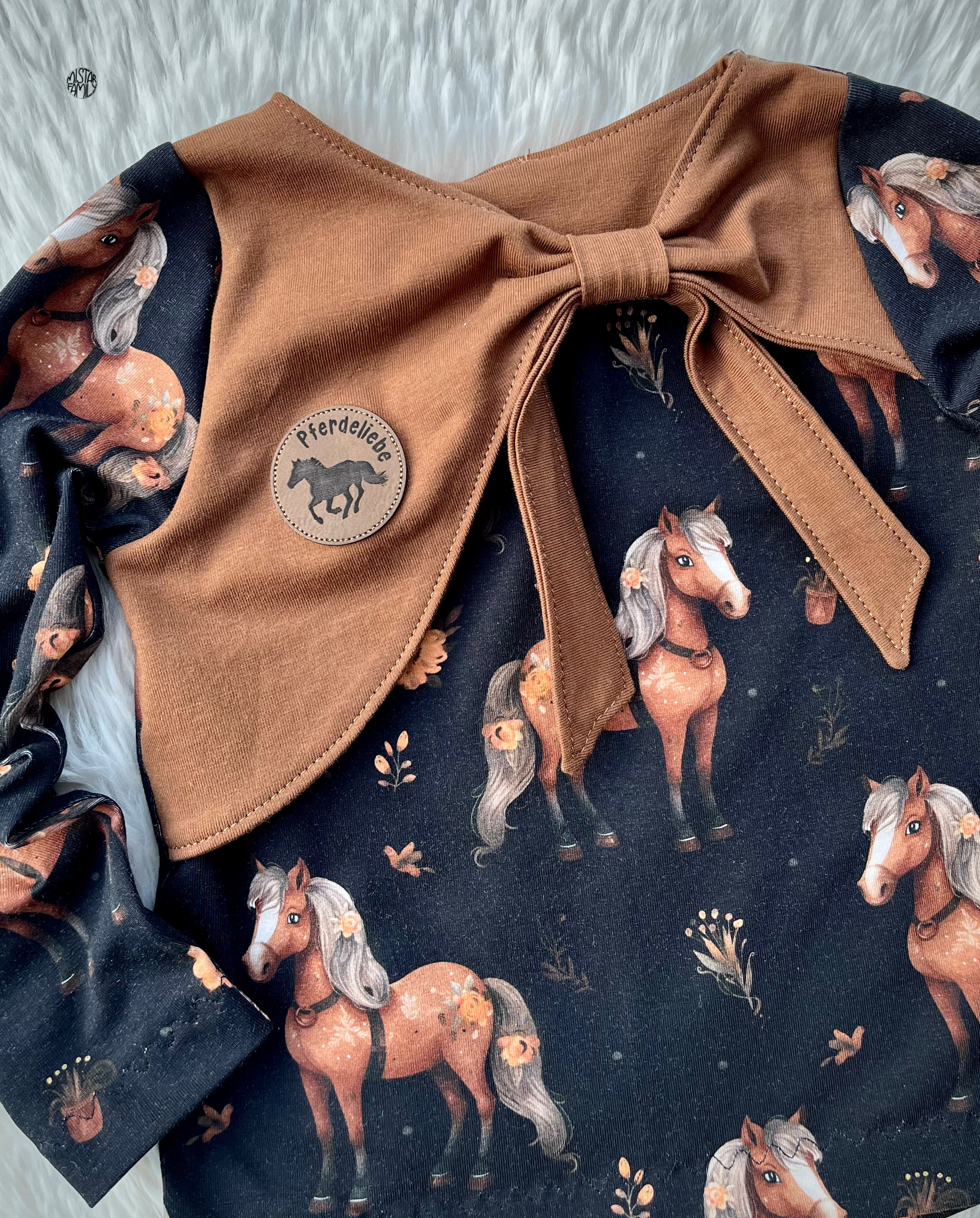 Eigenproduktion Bio Baumwolljersey Pferdetraum auf Schwarz