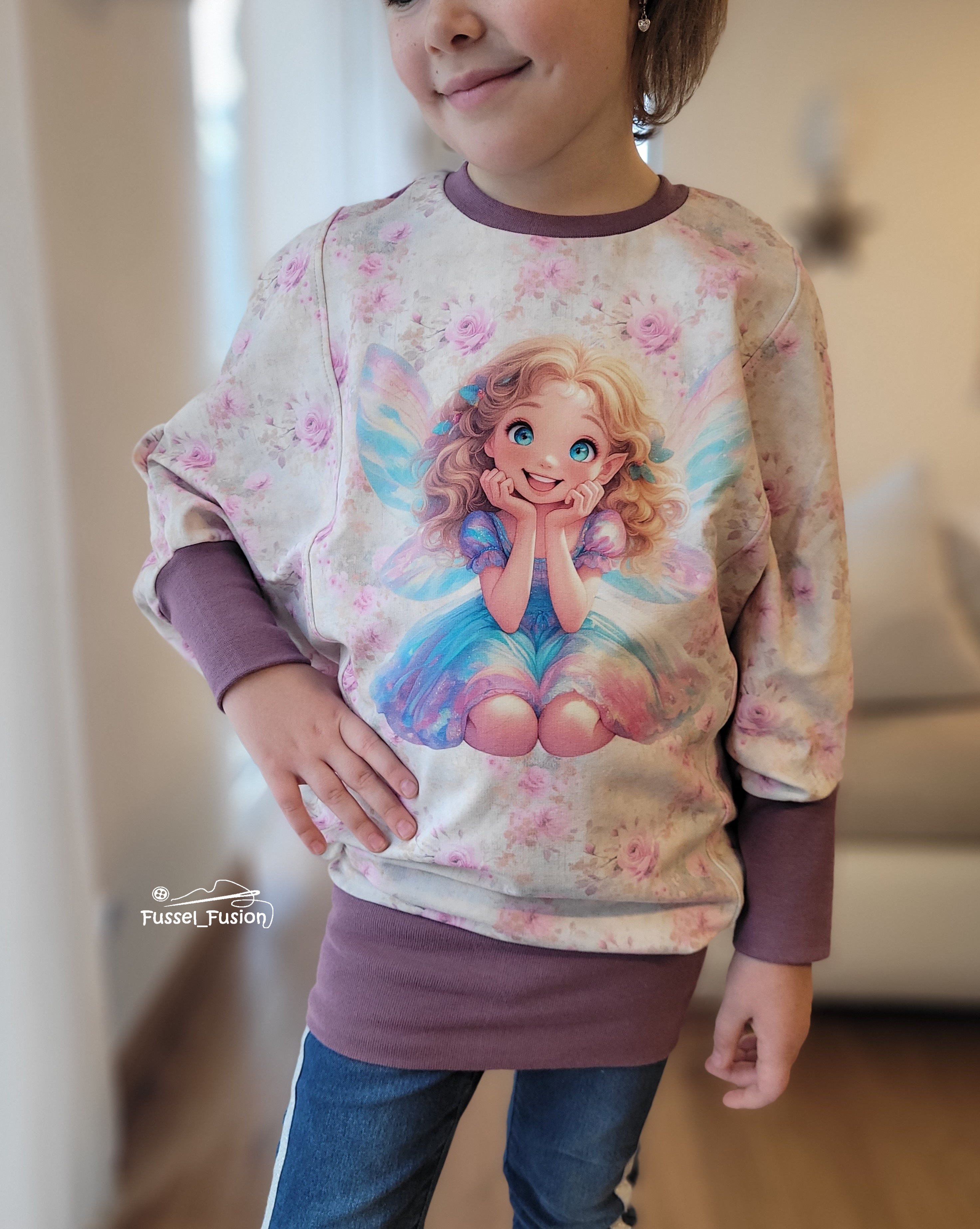 Eigenproduktion French Terry Panel Zauberhafte Fee mit Blumen auf Cremeweiß ca. 60 x 165