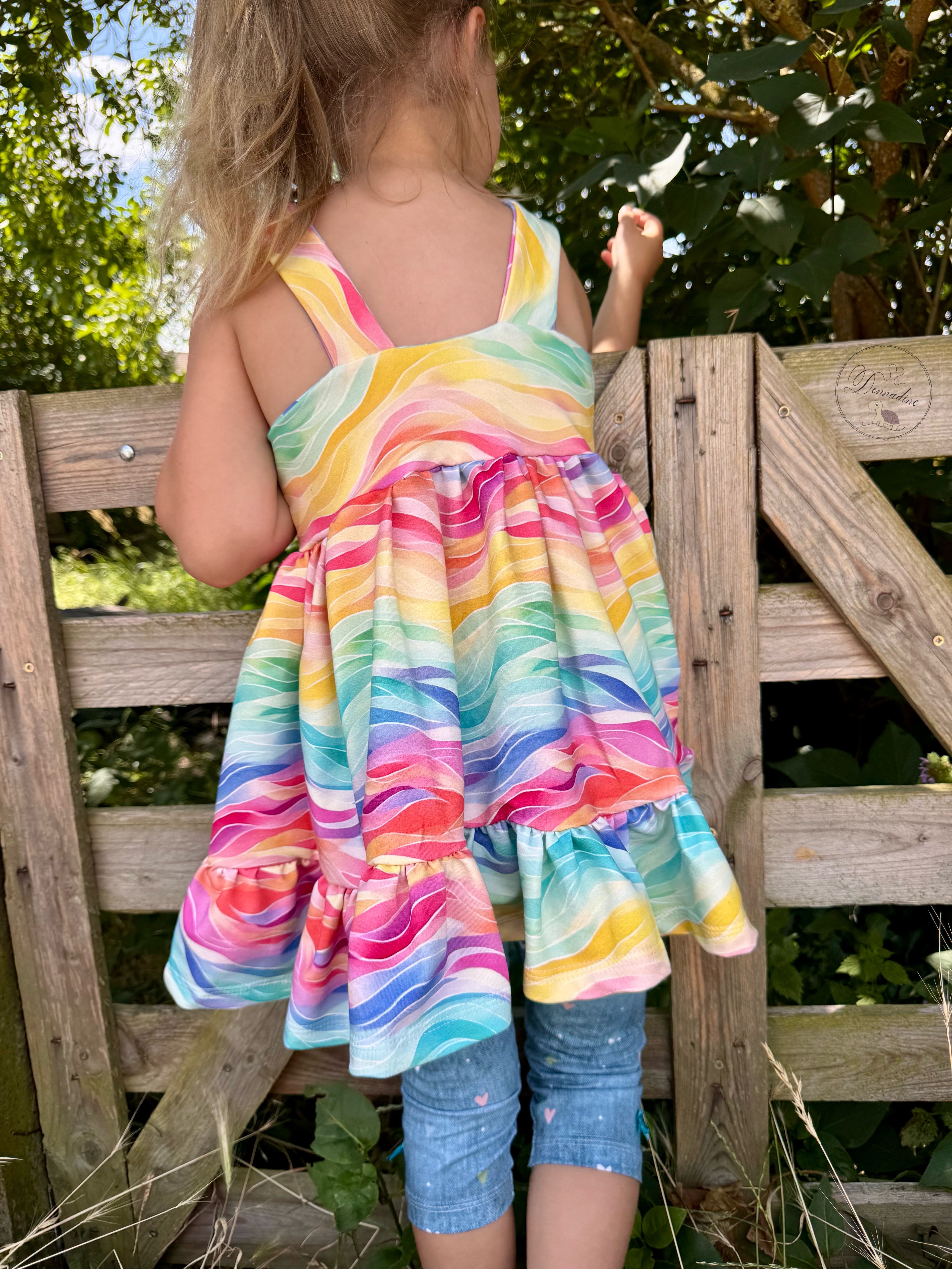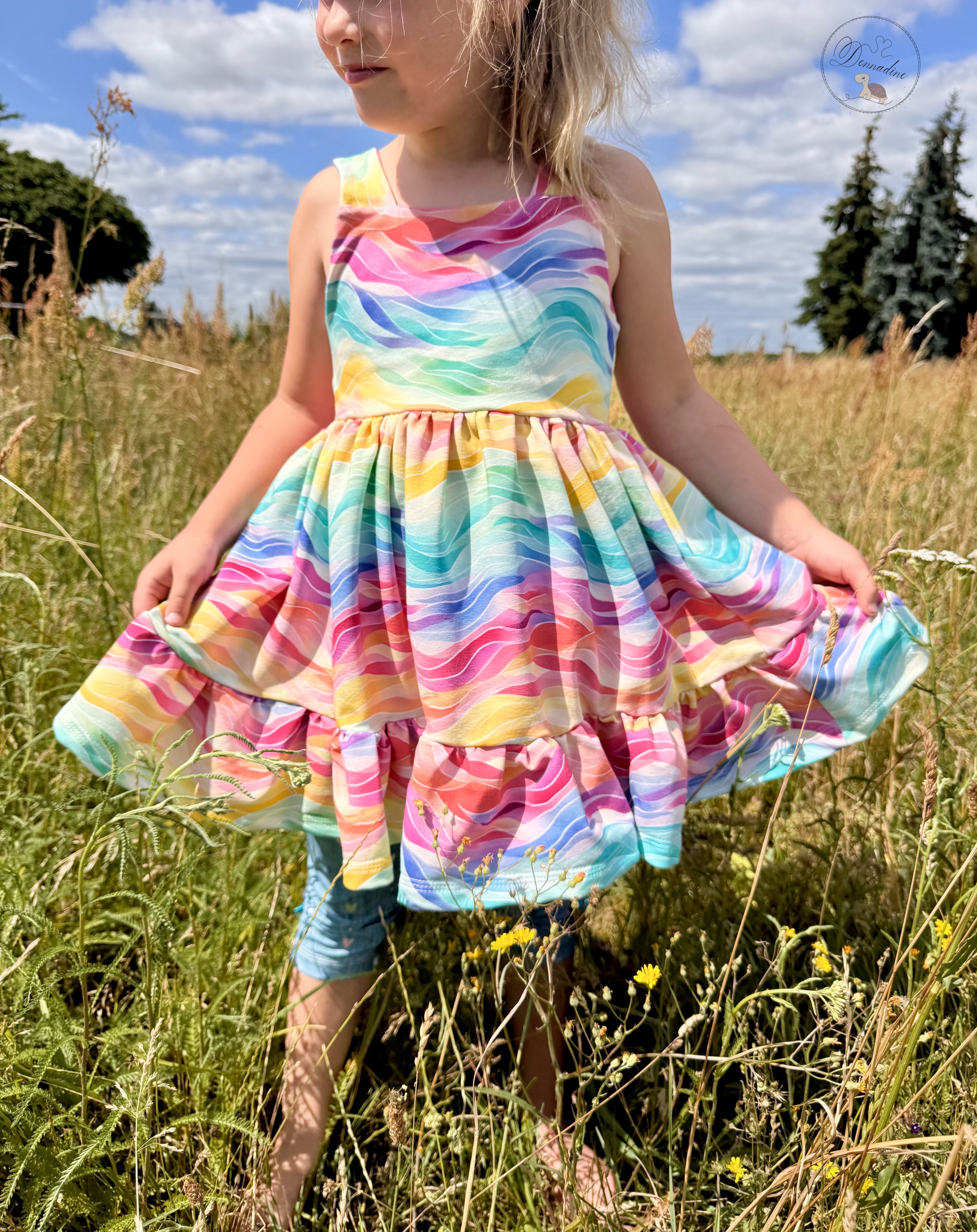 Eigenproduktion Bio French Terry Regenbogen Wellen auf Pastell