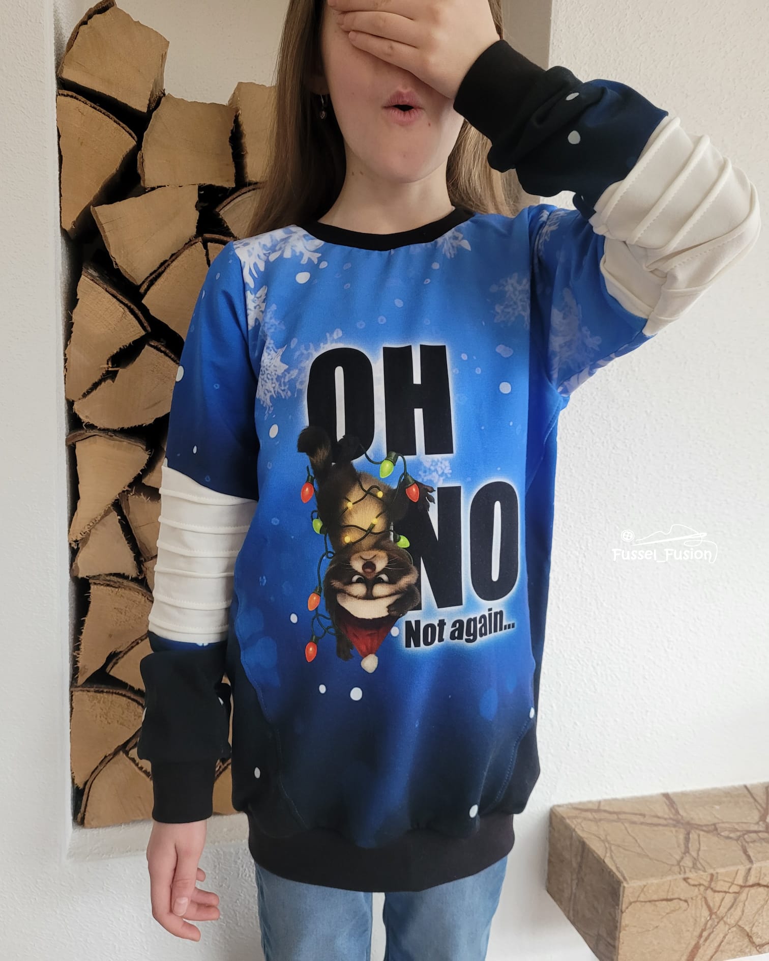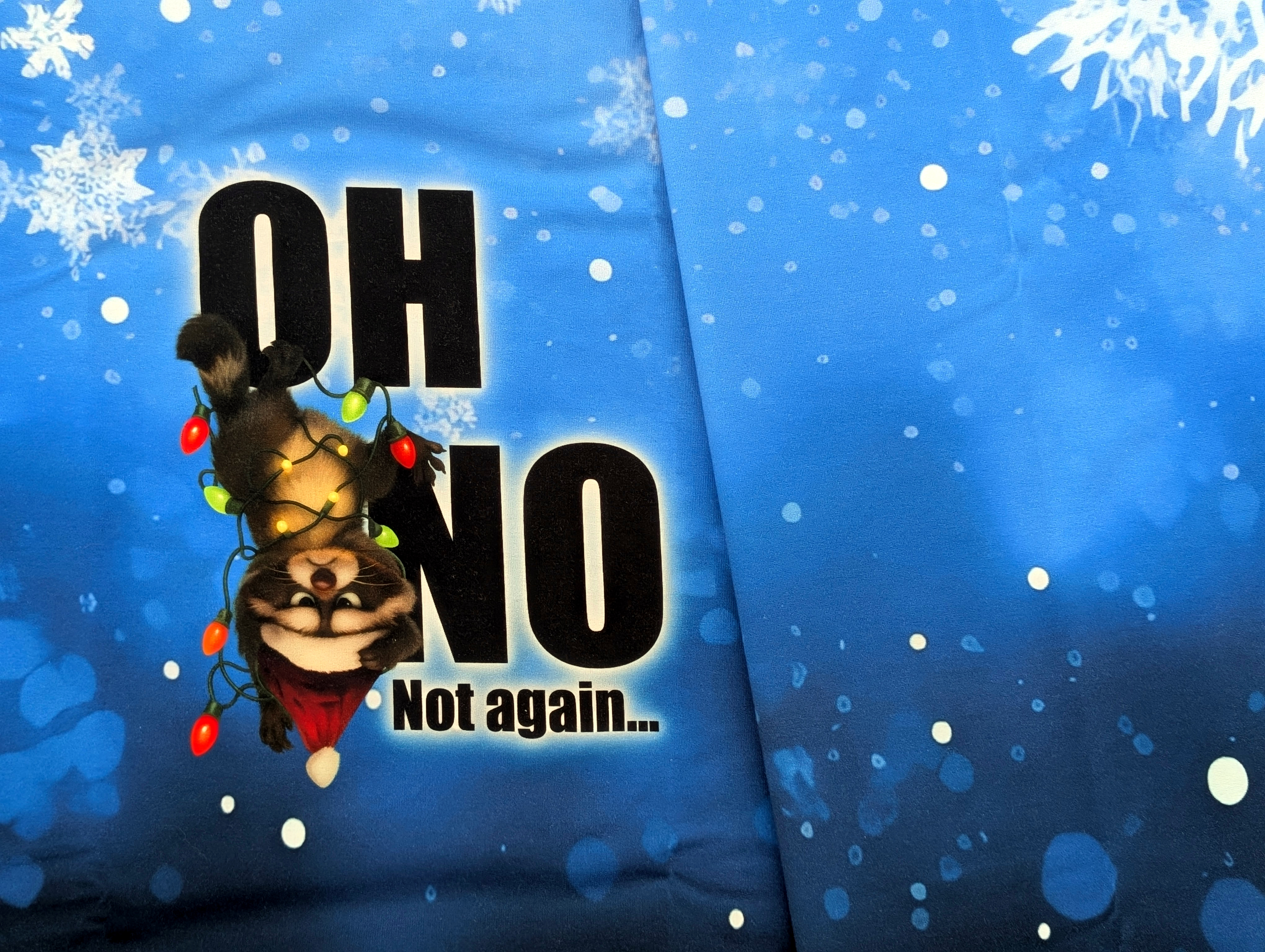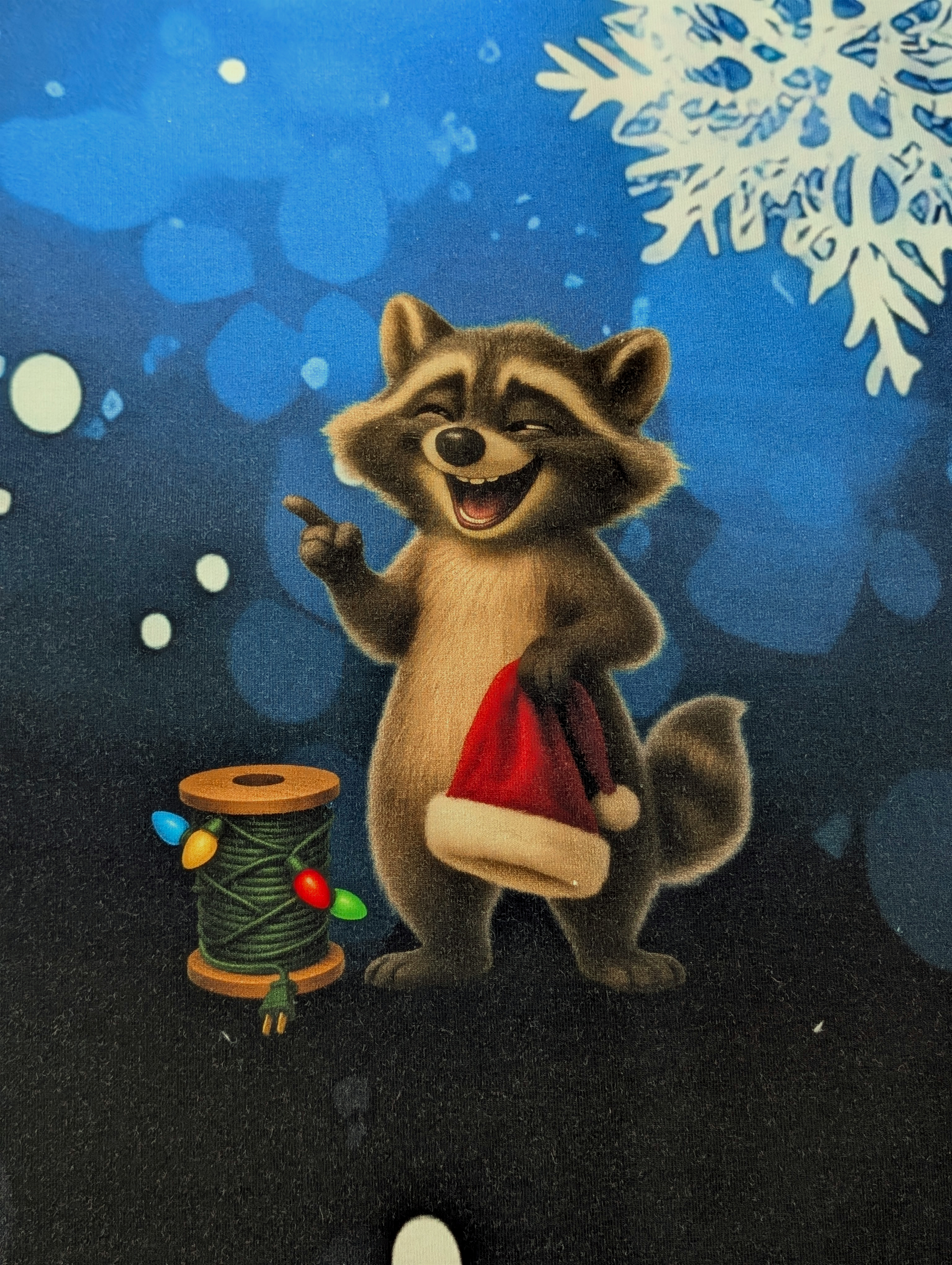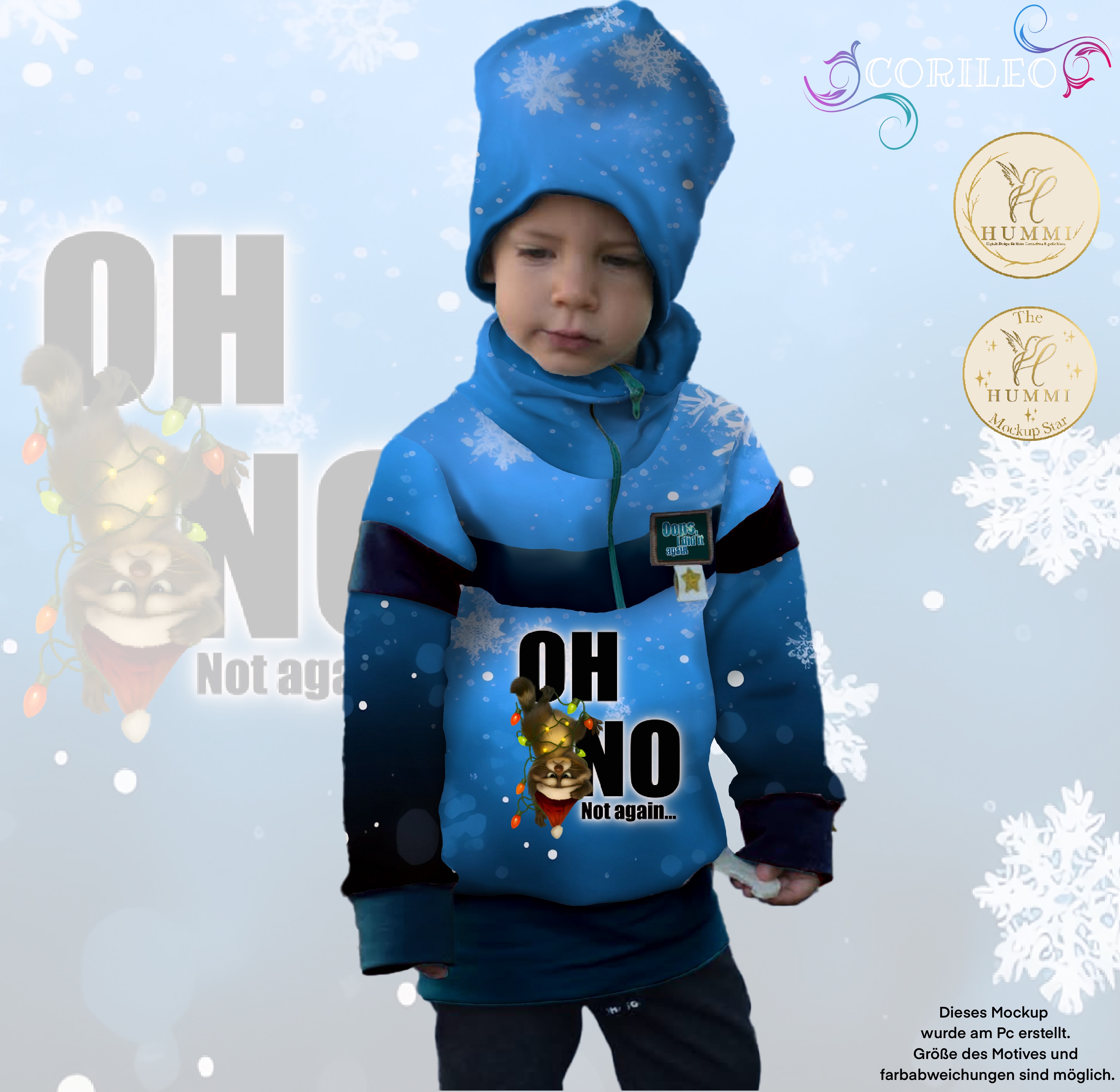 Eigenproduktion Panel French Terry Waschbär Oh No Winterdesign auf Blau 80 x 165 cm