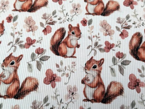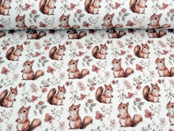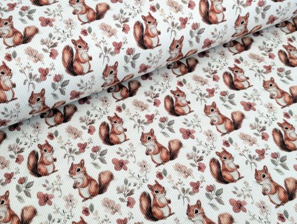 Eigenproduktion Rib Jersey Eichhörnchen auf Cremeweiß