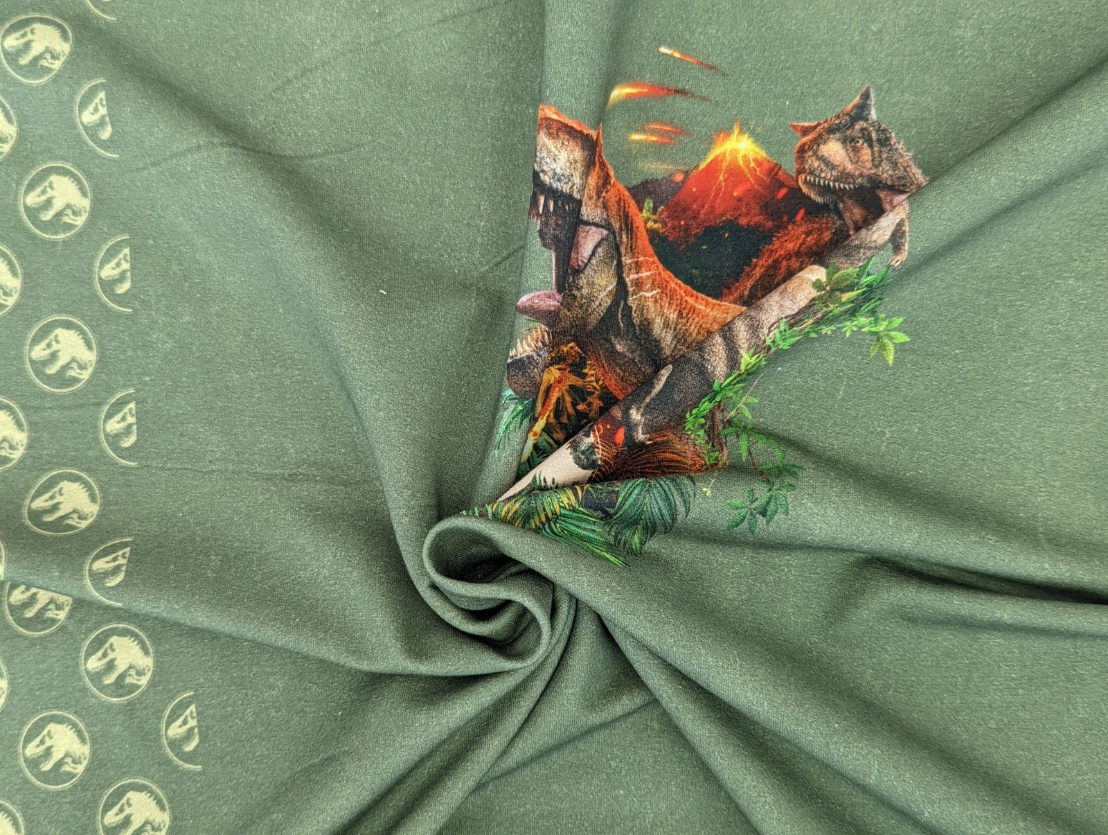 French Terry Digital Panel ca 75 x 150 cm Jurassic World Dunkelolive