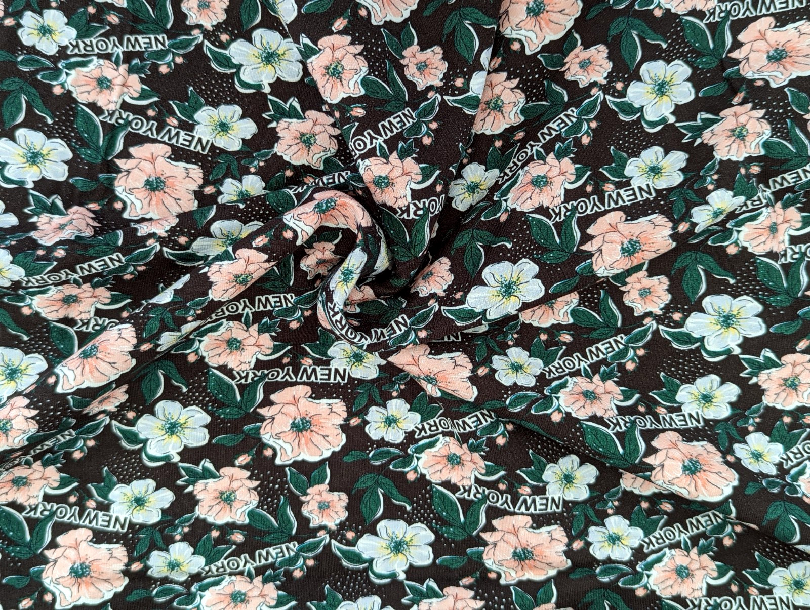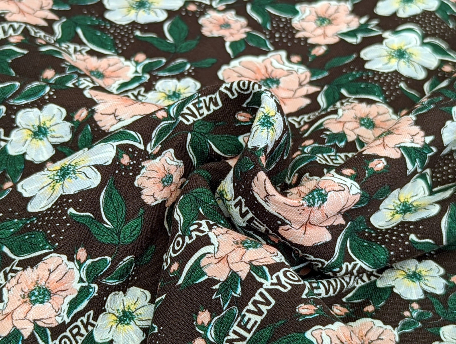 French Terry Everything is possible Blumen auf Dunkelbraun