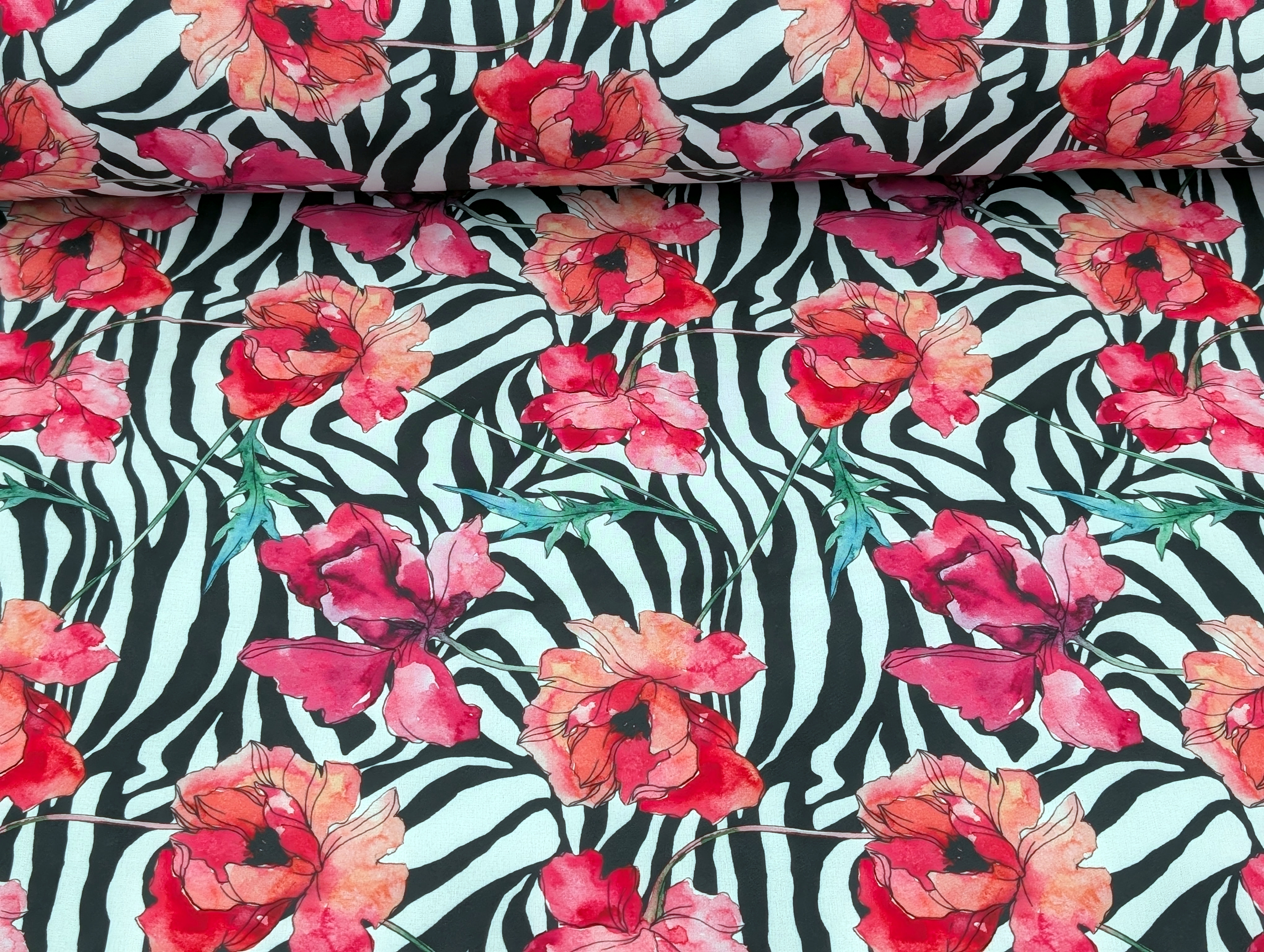 Softshell Digitaldruck Zebramuster mit Blumenranken Creme