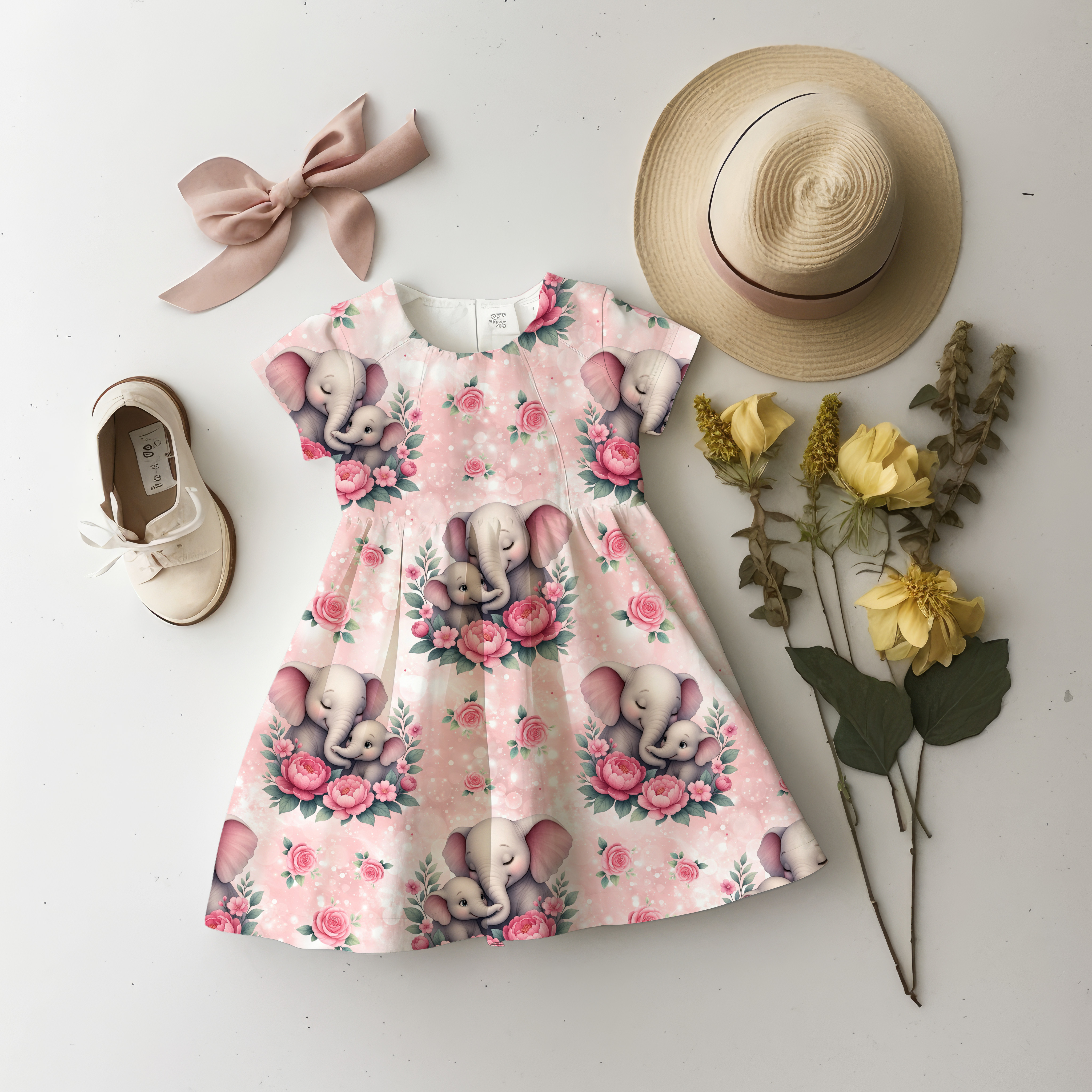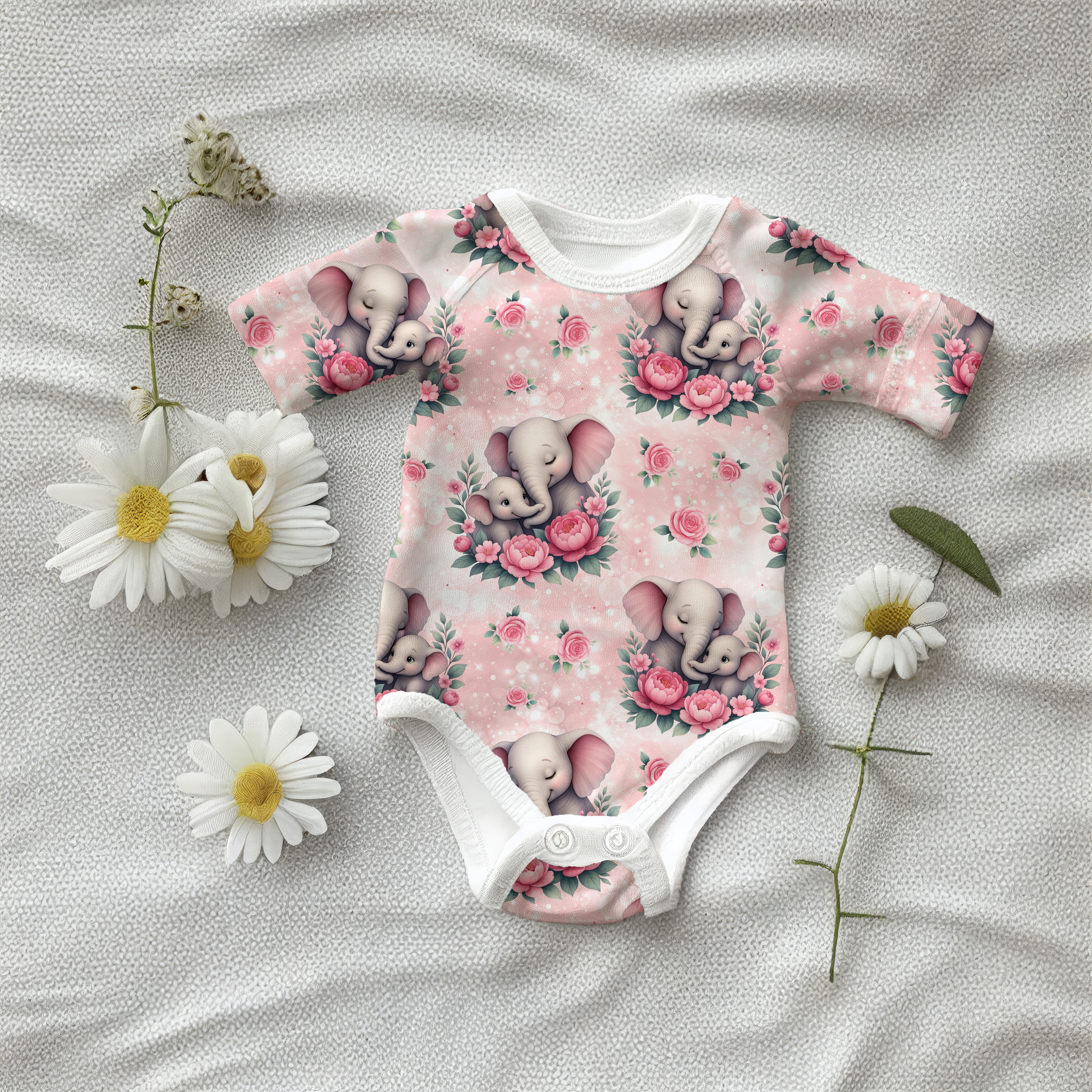 Eigenproduktion Elefanten auf Rosen Rosa