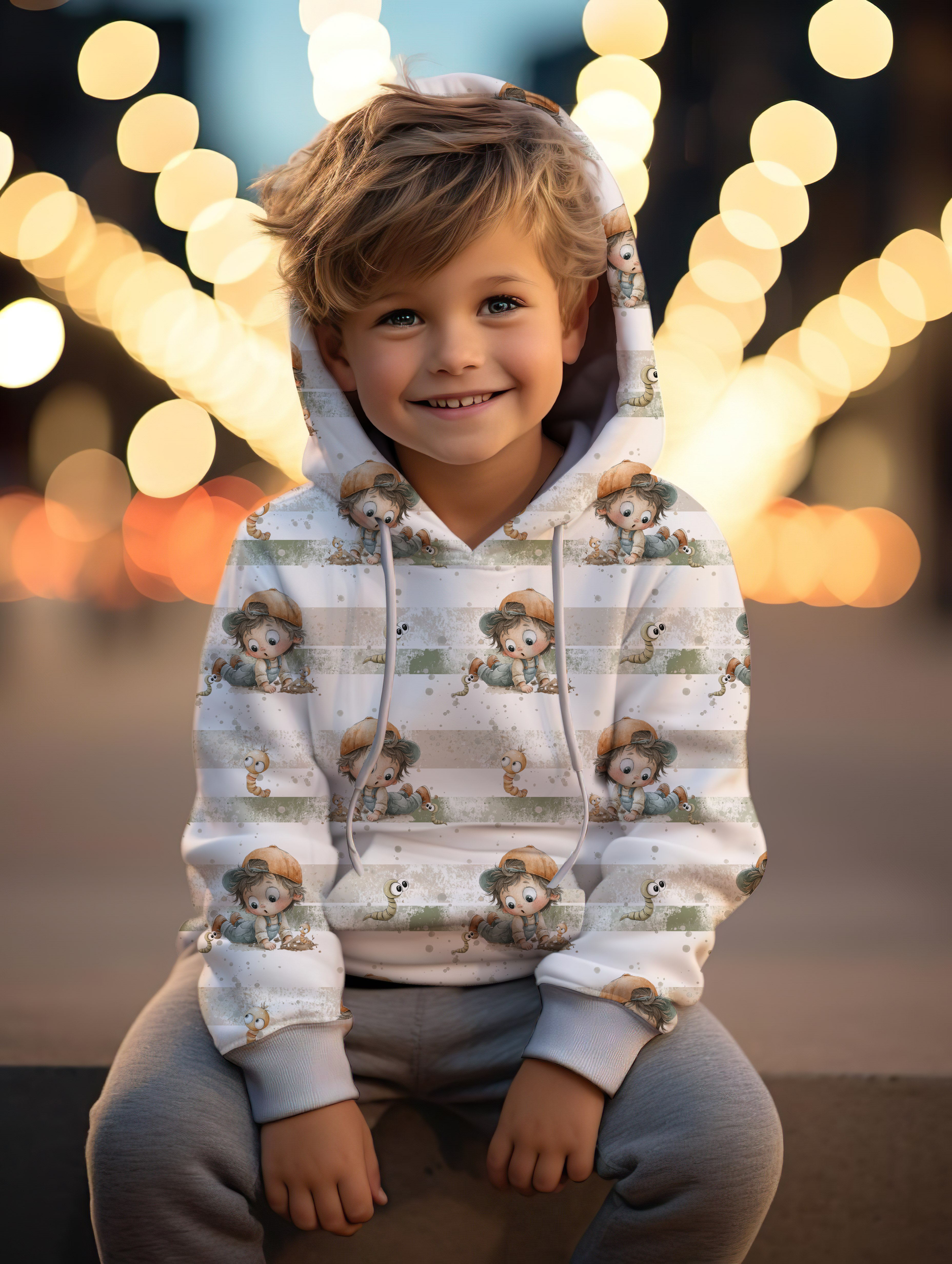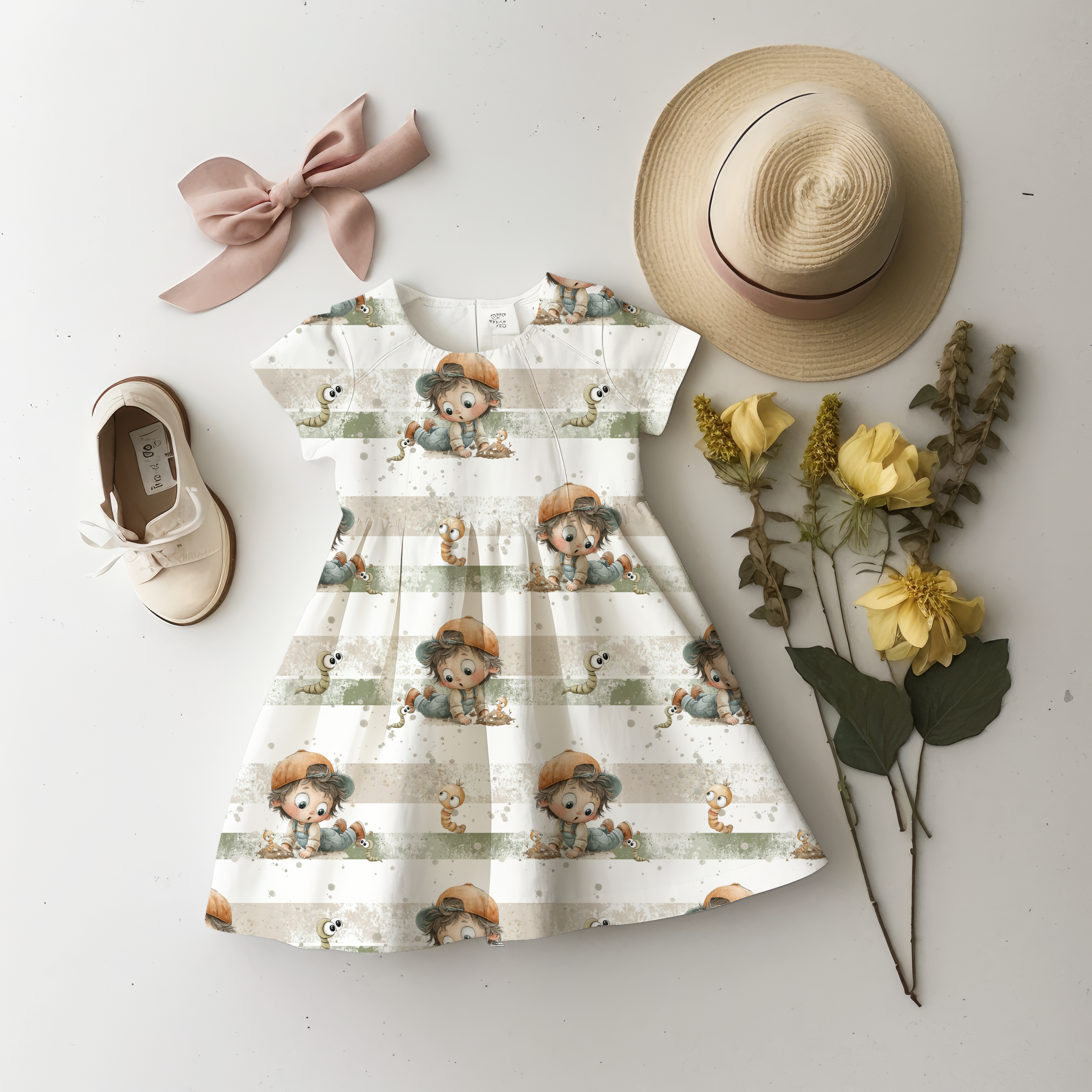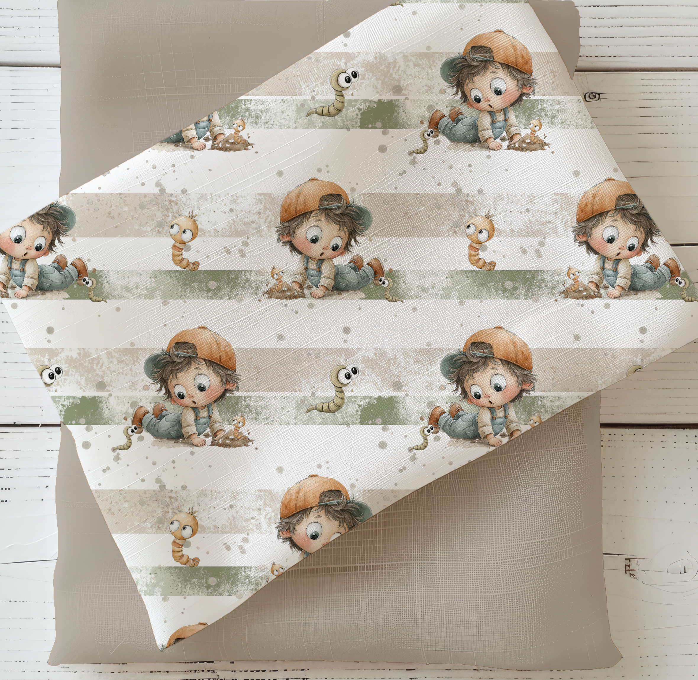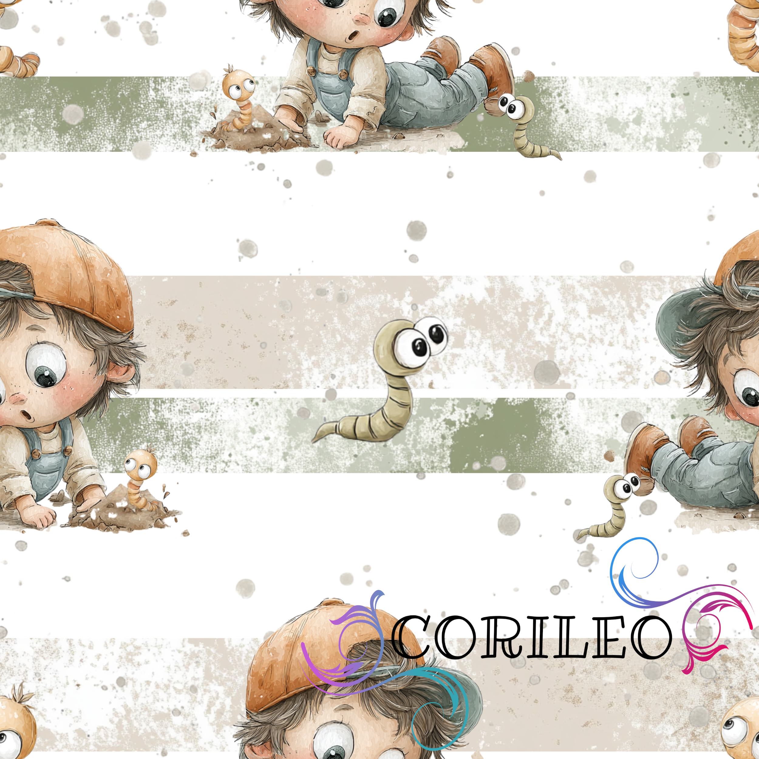 Eigenproduktion Kleiner Entdecker und der Regenwurm auf Grün/Weiß