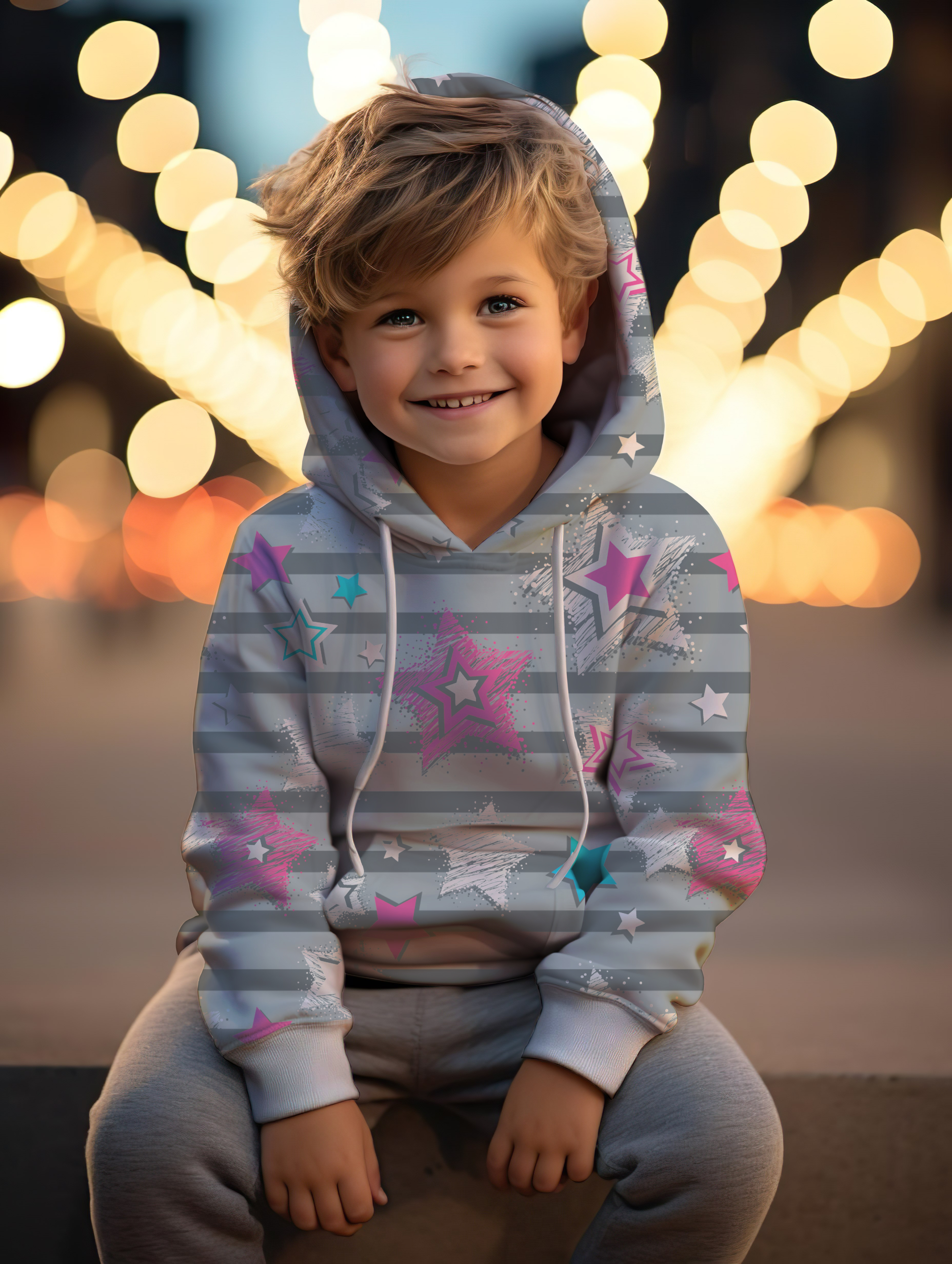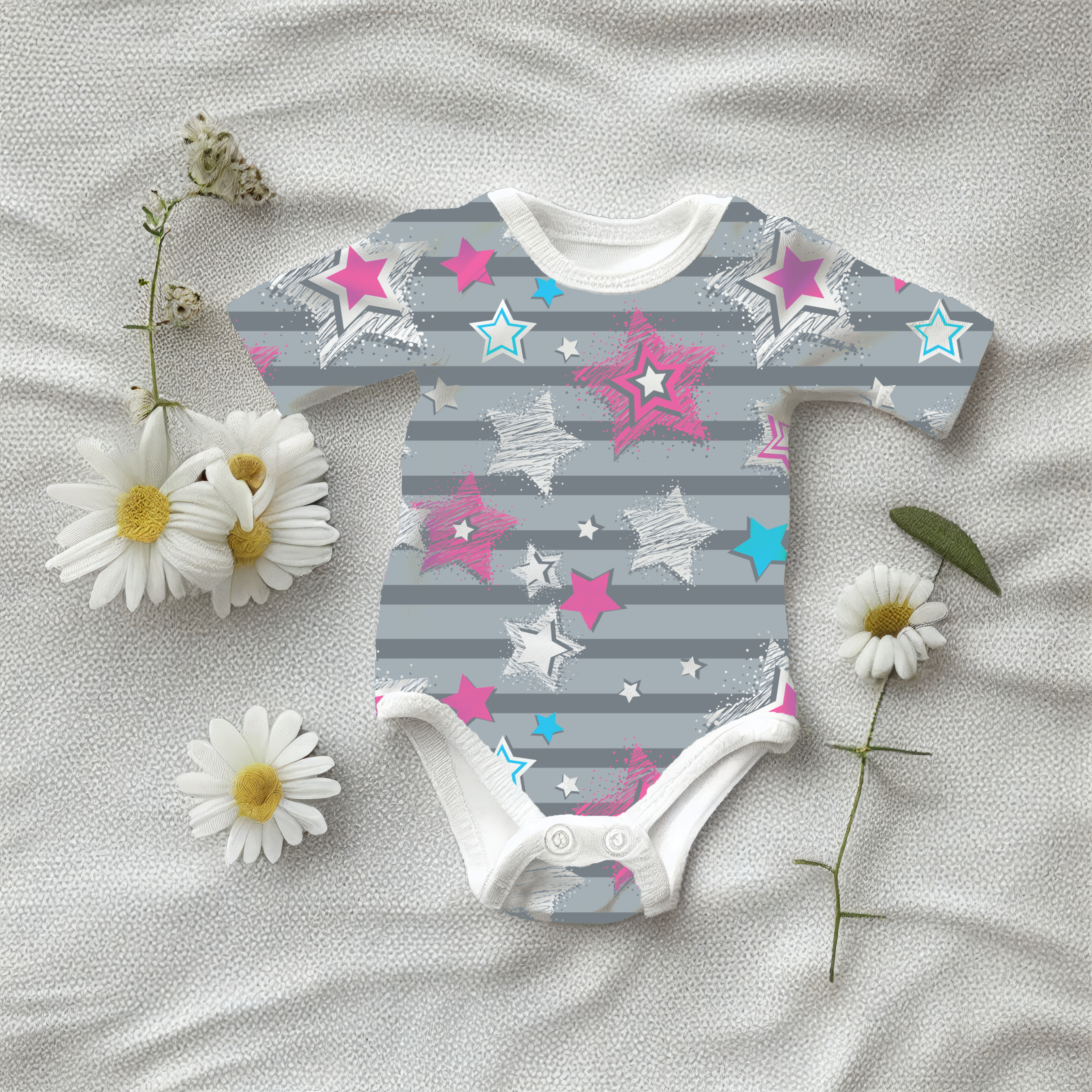Eigenproduktion Streifen Sterne Rosa/Weiß